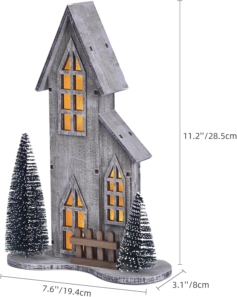 حرفية رائعة في الخشب والبلاستيك: مصنوعة من الخشب والبلاستيك عالي الجودة، تعرض هذه القطعة الاحتفالية لمسات نهائية ناعمة وقصاصات نظيفة وتفاصيل دقيقة. من إطارات النوافذ المجوفة إلى السياج الجميل والأشجار المصغرة، يعكس كل جزء مهارة الصنعة. إنها زينة عيد الميلاد متينة وأنيقة للاستخدام المنزلي.