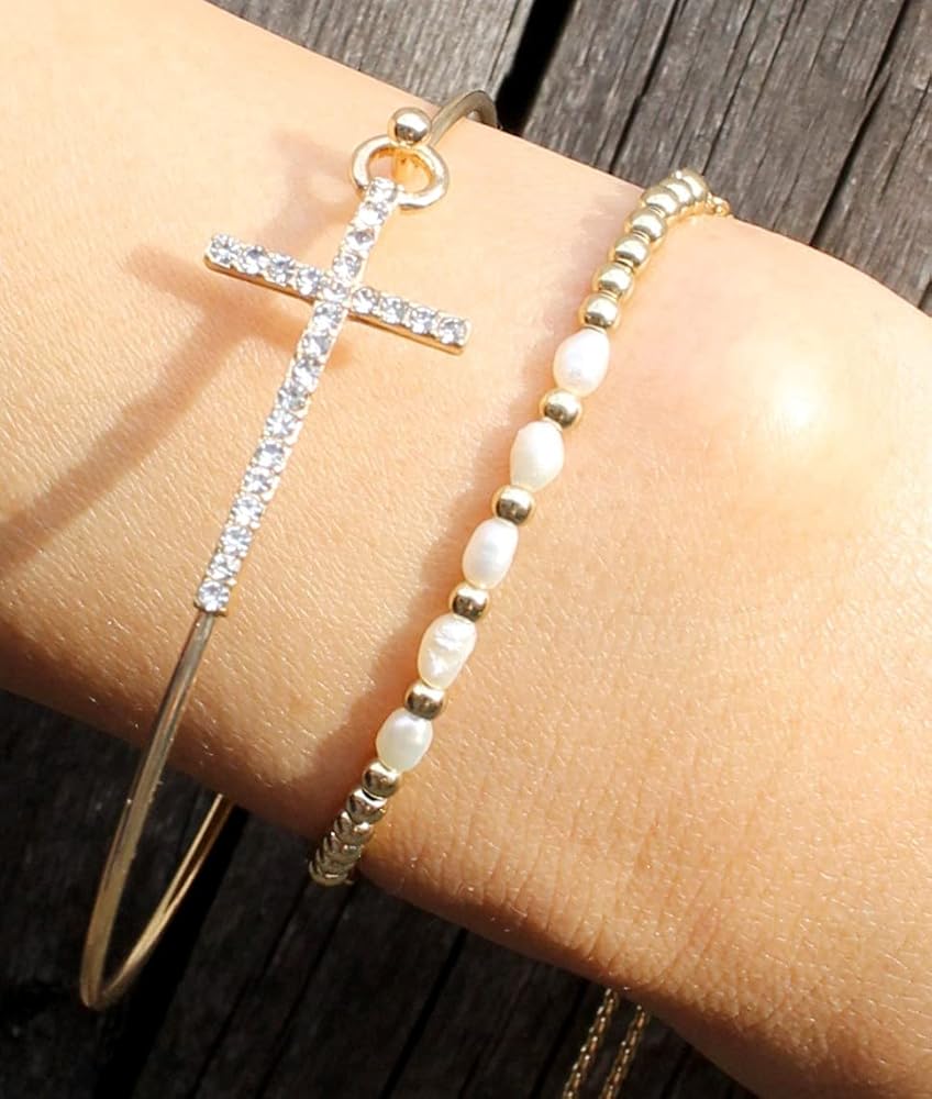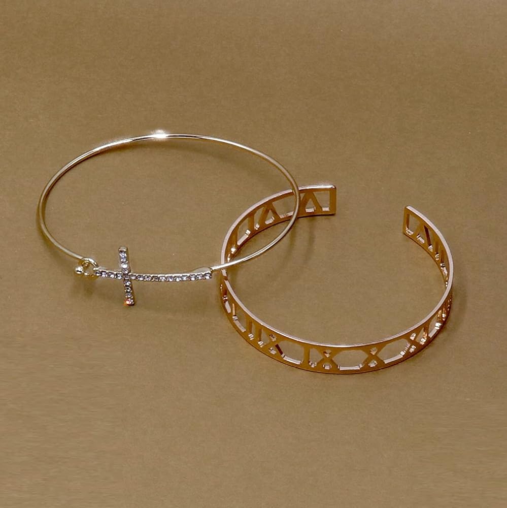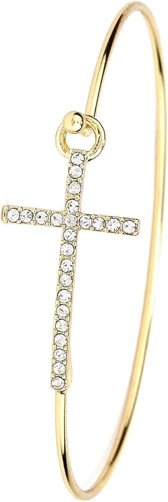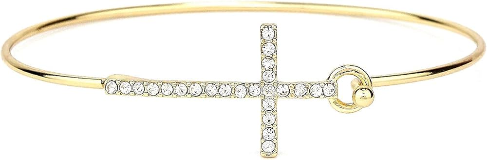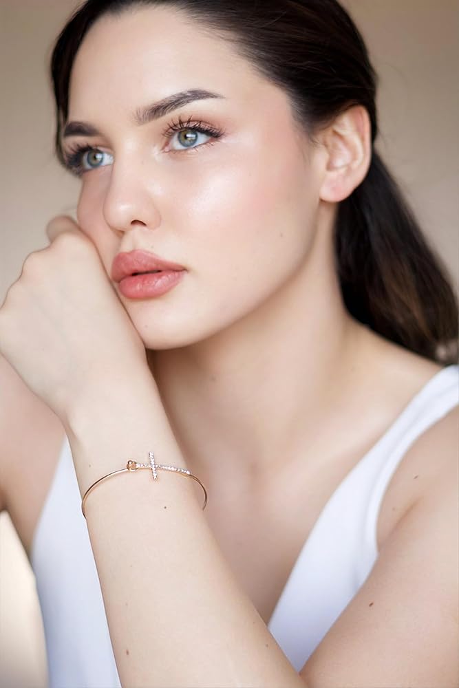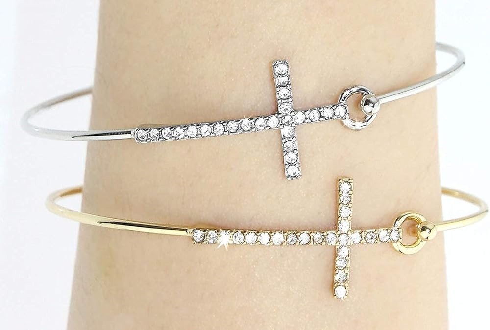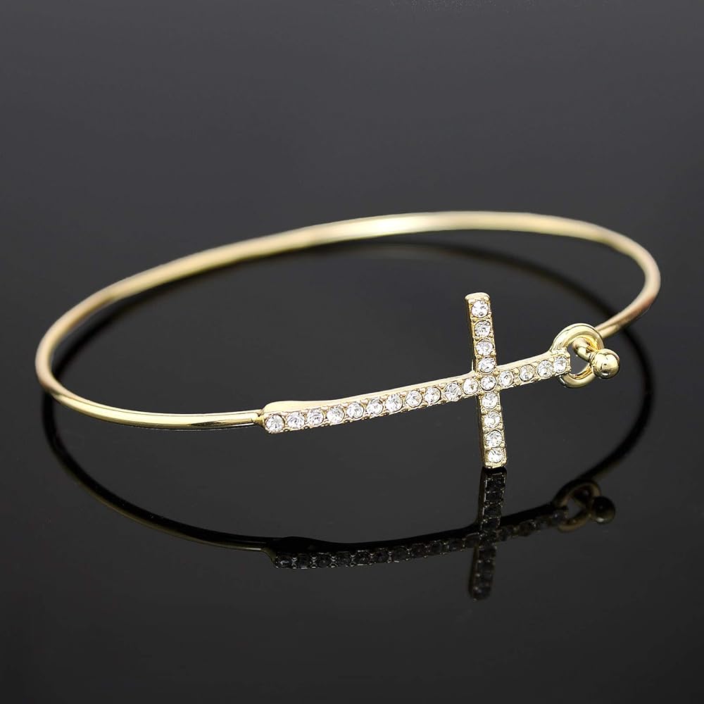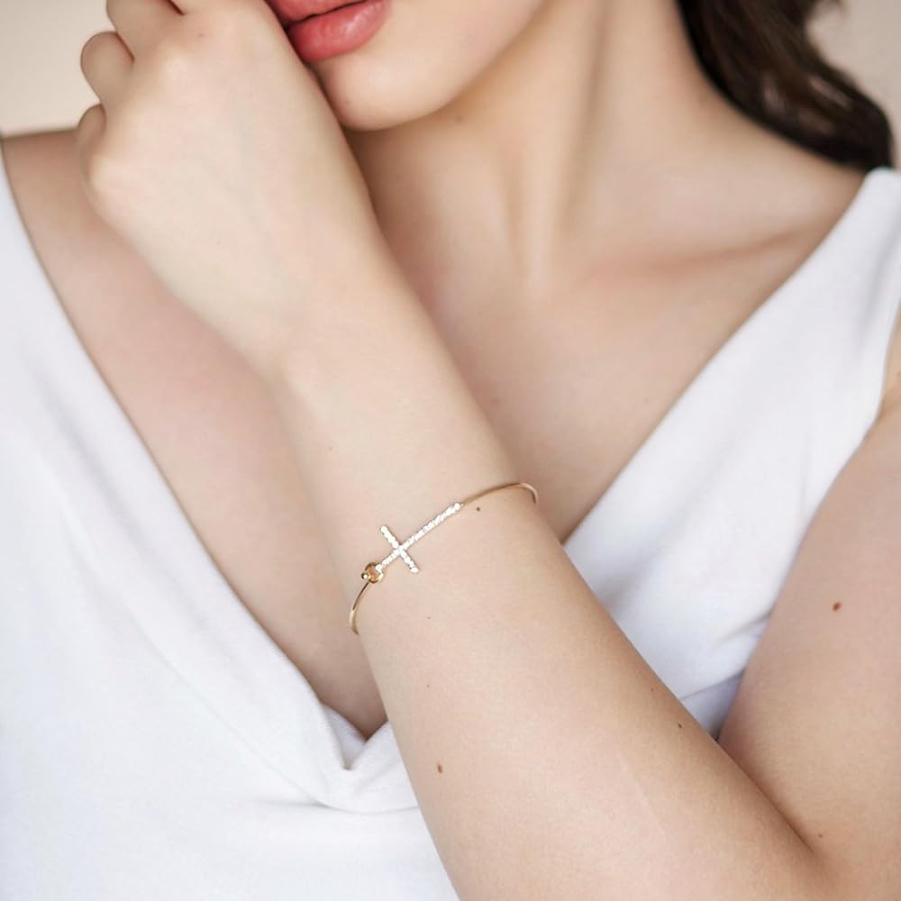 【Stylish and Comfy】Crystal Cross Hook Wire Bracelet, lightweight and comfortable to wear or take off. Push down the hook to open the bracelet. Suitable for daily wear and any special occasion