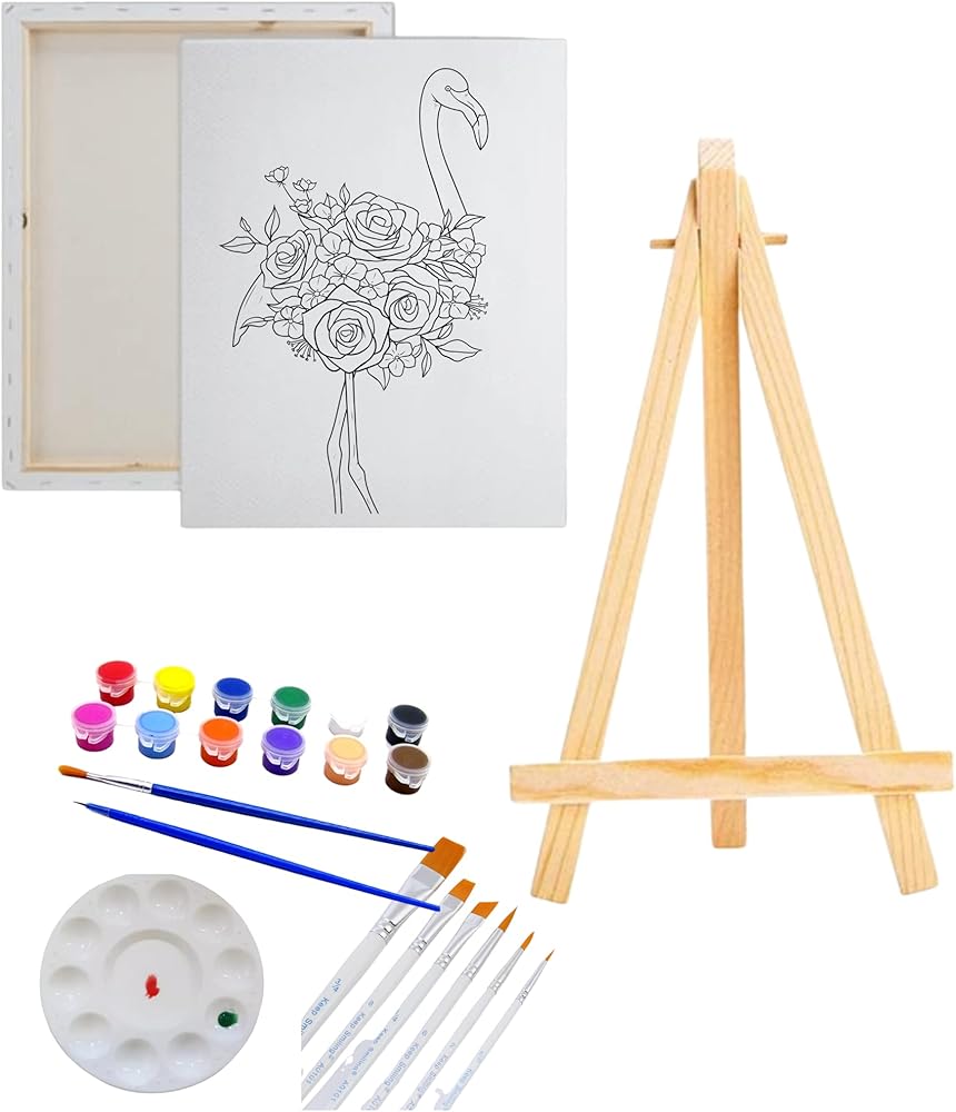 طقم طلاء زهرة فلامنغو من القماش المرسوم مسبقًا من Essenburg | للبالغين والمراهقين رشفة وطلاء لصالح الحفلات | نشاط ثنائي للتاريخ الليلي يمكنك صنعه بنفسك فلامينجو (قماش M 12X16 فقط) in Kuwait