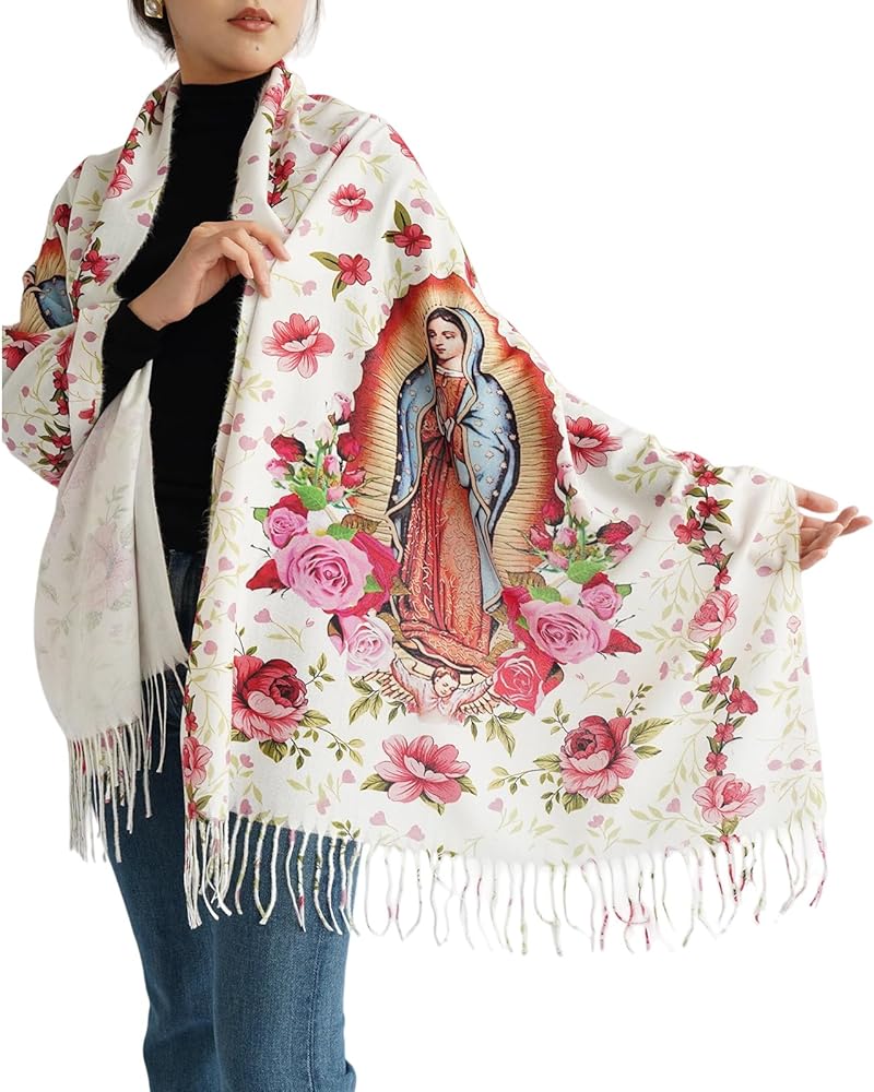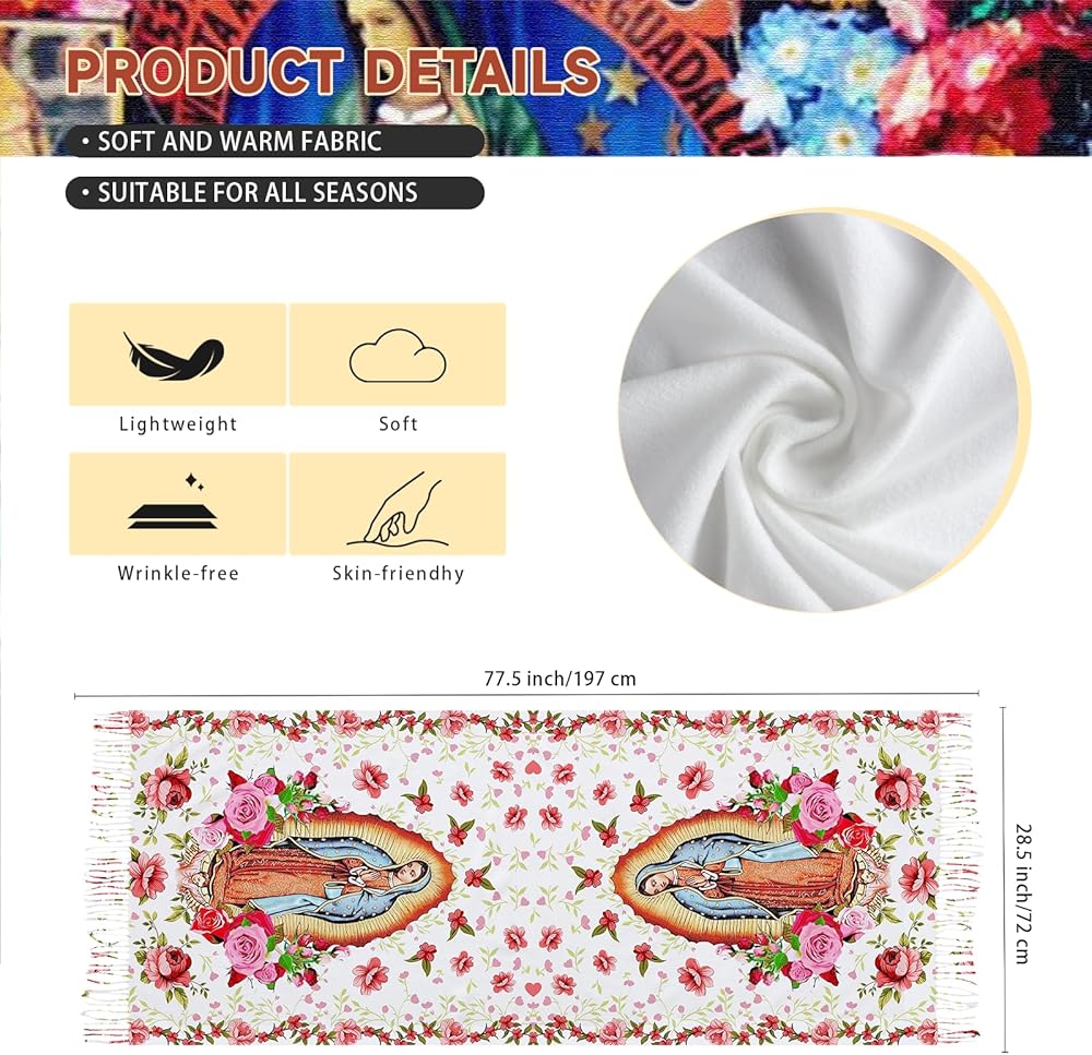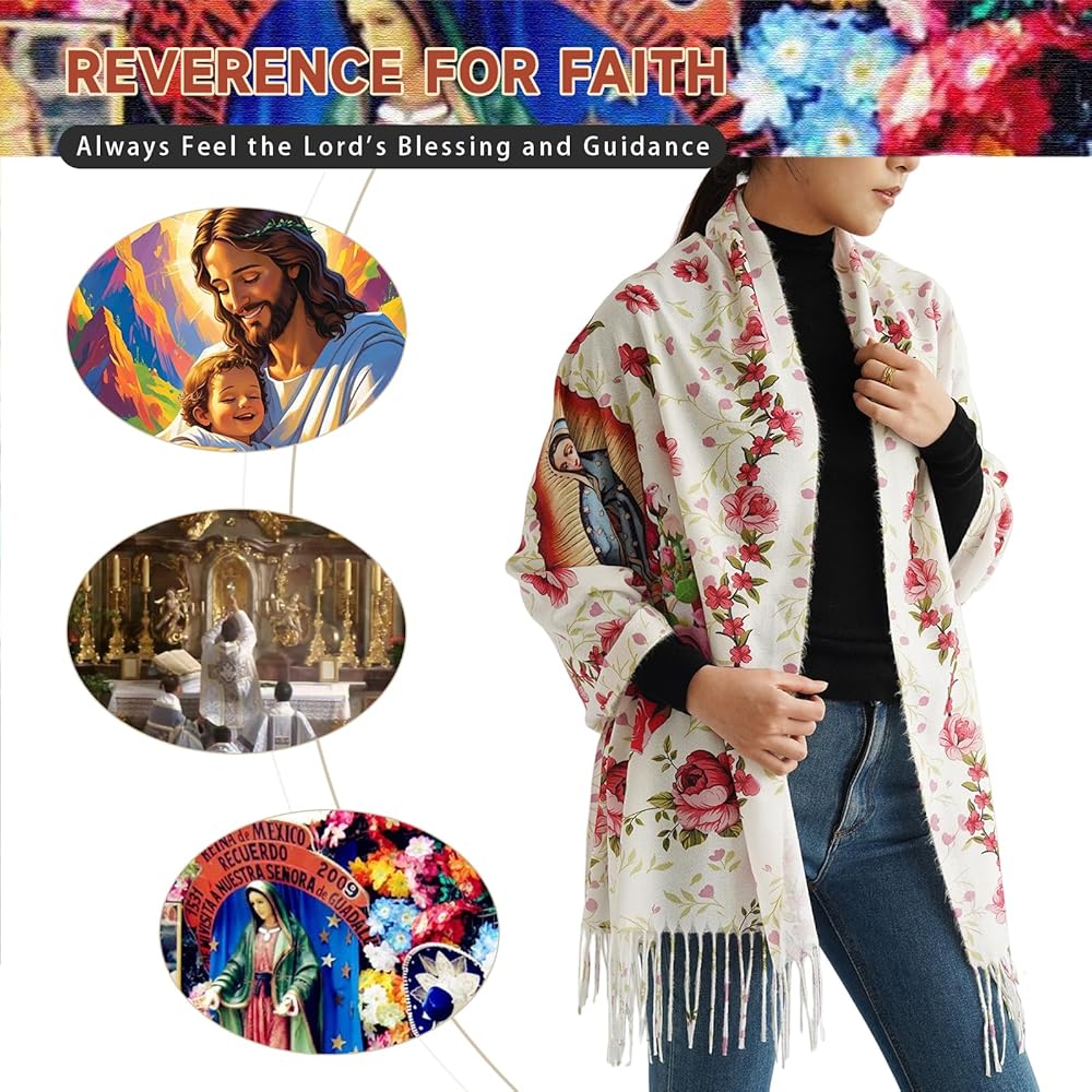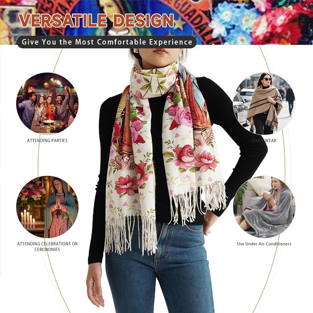 【Religious Gift】:rebozo de la virgen de guadalupe blends religious symbolism, comfort and beauty, adding sophistication and timeless elegance, making it a must-have accessory. Whether you are giving it to a loved one or yourself, the scarf is a meaningful and fashionable gift.