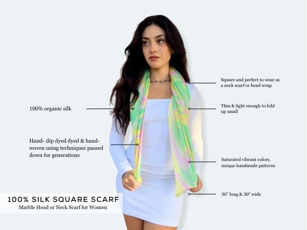 • المواد: خيارات الوشاح الحريري المربعة لدينا مصنوعة من الحرير الحقيقي بنسبة 100%، بينما تستخدم الأوشحة المستطيلة مزيجًا من الحرير الحقيقي المسامي. يتم غمس جميع الأنماط يدويًا على يد حرفيات في فيتنام، مما يؤدي إلى تصميمات فنية نابضة بالحياة. توفر هذه الأوشحة أناقة الوشاح الحريري المصمم بتفاصيل حرفية.