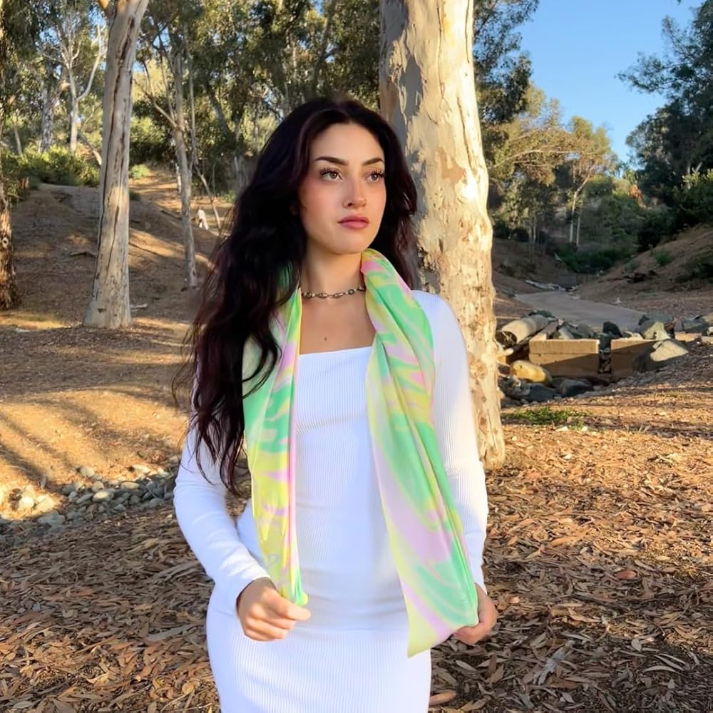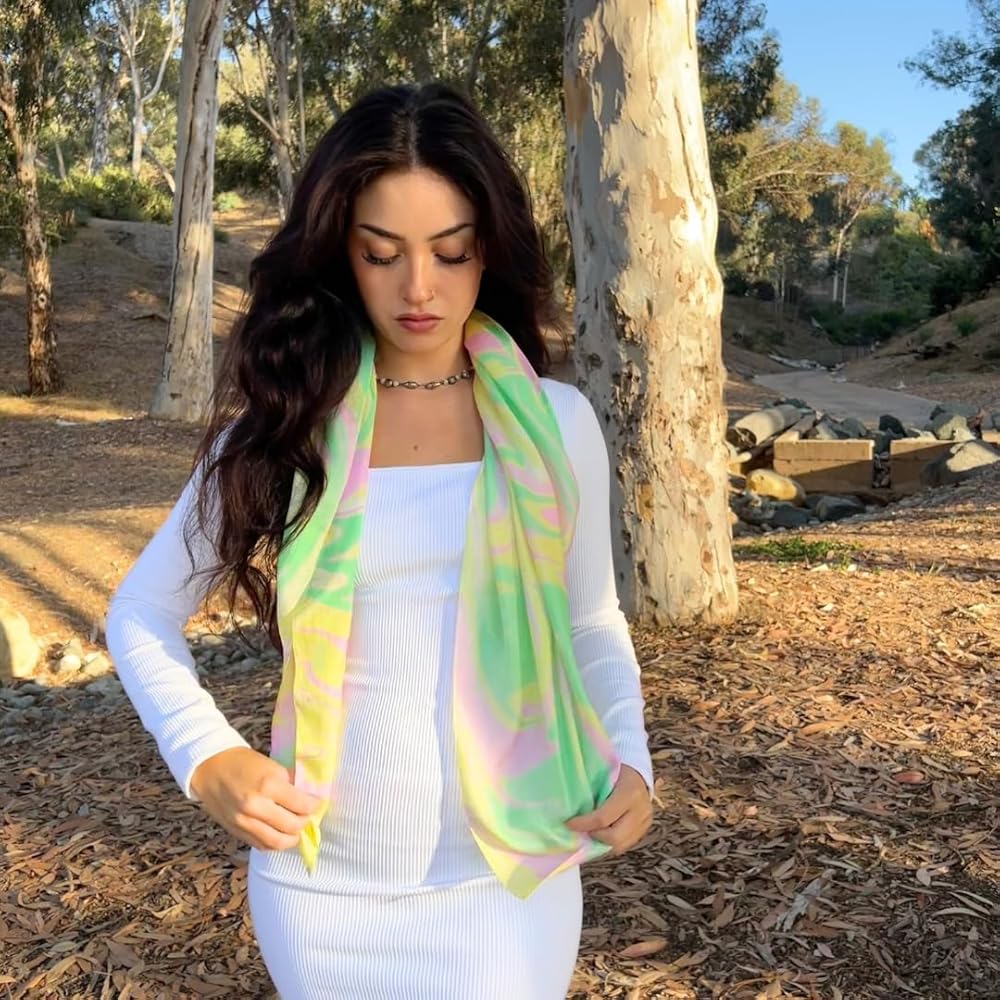 • كيفية الارتداء: يمكن ارتداء هذه القطع المتنوعة كوشاح رأس حريري للنساء، أو وشاح للشعر، أو وشاح للرقبة، أو لفافة. مثالي كوشاح شعر حريري، أو وشاح شعر حريري، أو وشاح للرأس، فهو يضيف الأناقة إلى الارتداء اليومي أو المناسبات الخاصة. المقاسات المستطيلة الكبيرة تعمل بشكل جميل كشالات ولفائف لفستان السهرة أو لفافات وشالات رسمية.