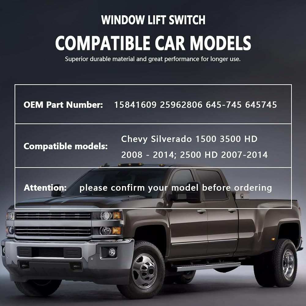 - التوافق: متوافق مع سيلفرادو 1500، سيلفرادو 2500 HD، سيلفرادو 3500 HD 2007 2008 2009 2010 2012 2013 2014