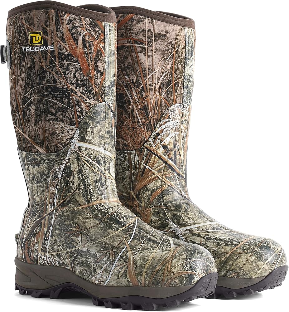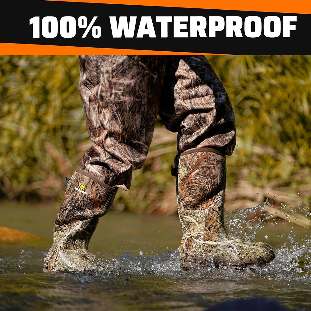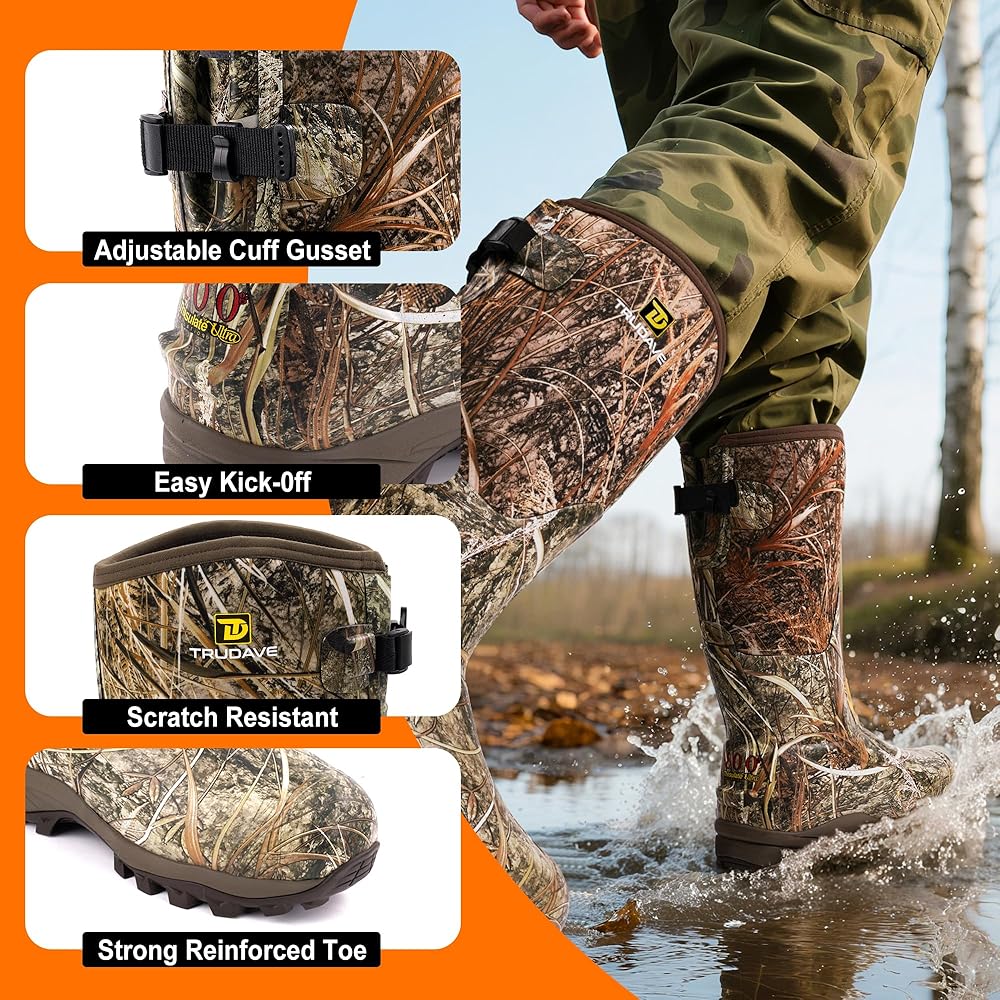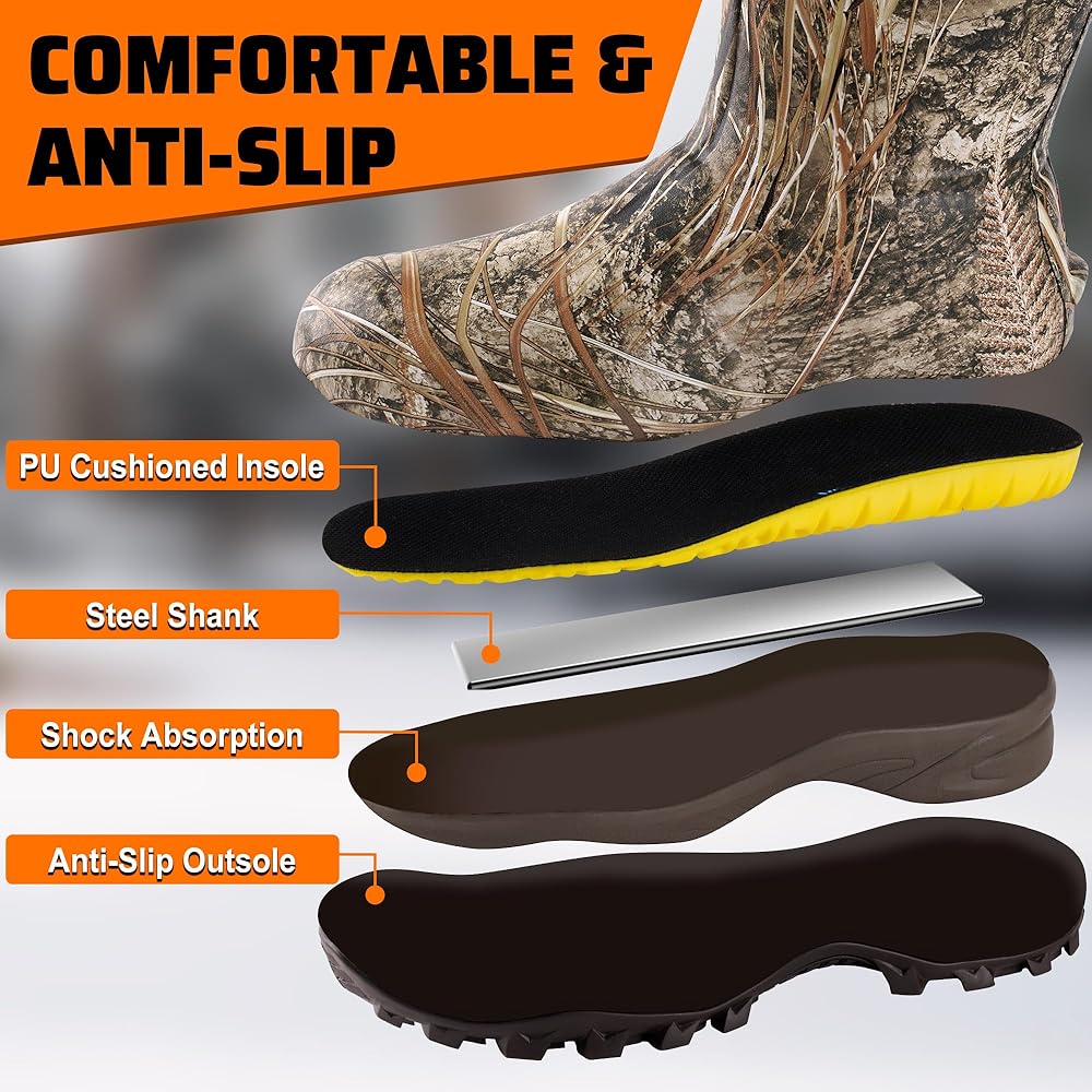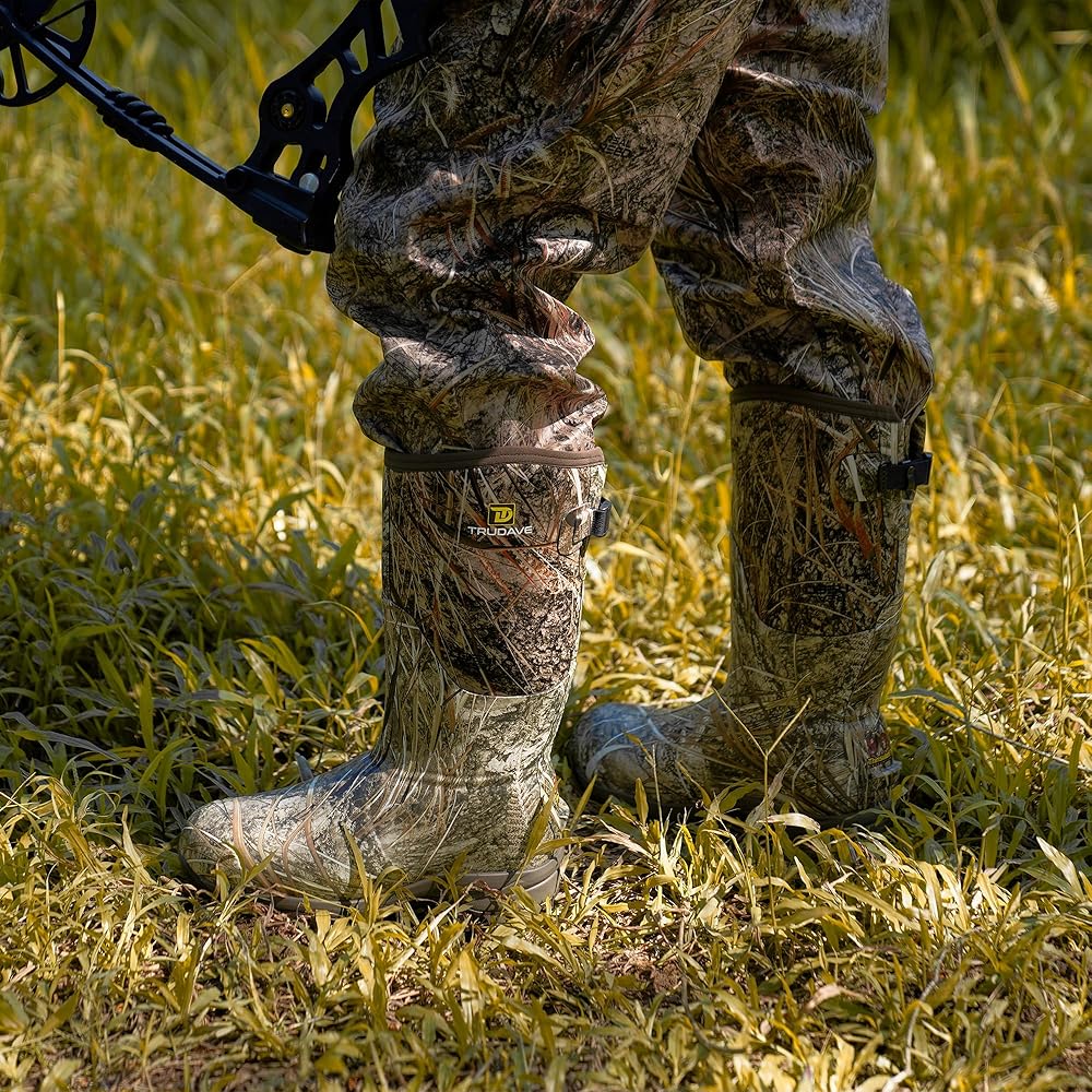 【غطاء أصابع مقاوم للثعبان وملاءمة قابلة للتعديل】 غطاء أصابع معزز يقاوم لدغات الثعبان، بينما يضمن حزام الكاحل المرن ملاءمة مريحة لأحذية الوحل للرجال أثناء الصيد الطويل.
