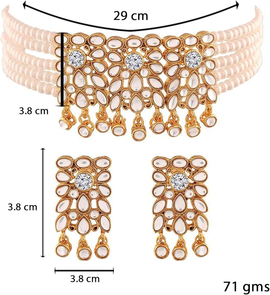 أبعاد المنتج: طول القلادة - 11.3 بوصة × العرض - 1.5 بوصة، ارتفاع الأقراط - 1.5 بوصة × العرض - 0.9 بوصة، الوزن - 73 جرام