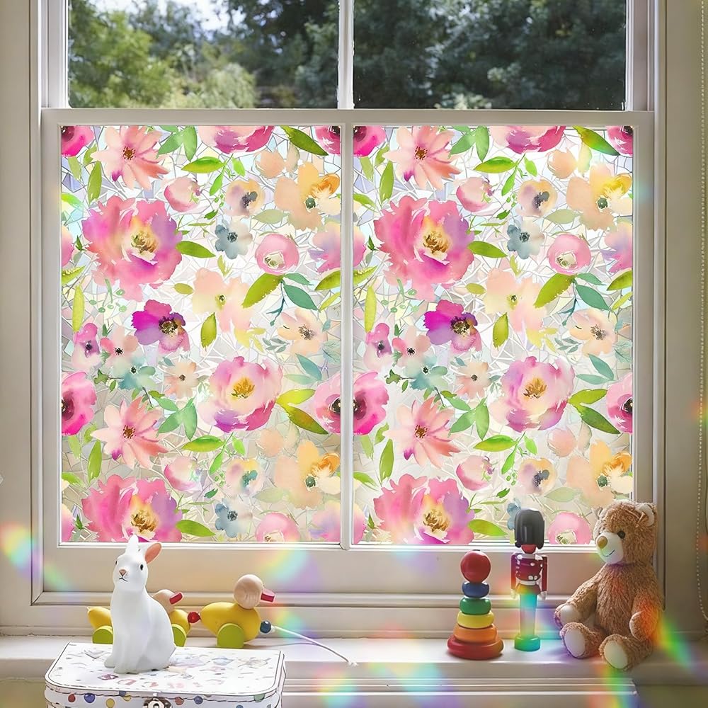 فيلم الخصوصية للنوافذ الزجاجية، ملصقات ثابتة مزخرفة بالزهور، لون نافذة قوس قزح لتزيين غرفة المنزل، ملصقات باب السيارة مع تأثير قزحي الألوان، قابلة للإزالة