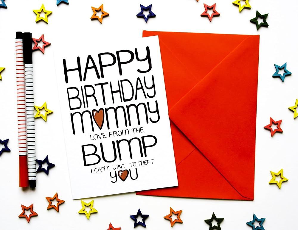 A cute, unique Birthday card to send to a expecting Mommy to be from her Bump, Baby
