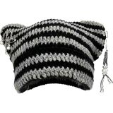 VERSATILE DESIGN: Handcrafted crochet beanie featuring adorable cat ears and a trendy green and white striped pattern, perfect for Y2K fashion enthusiasts