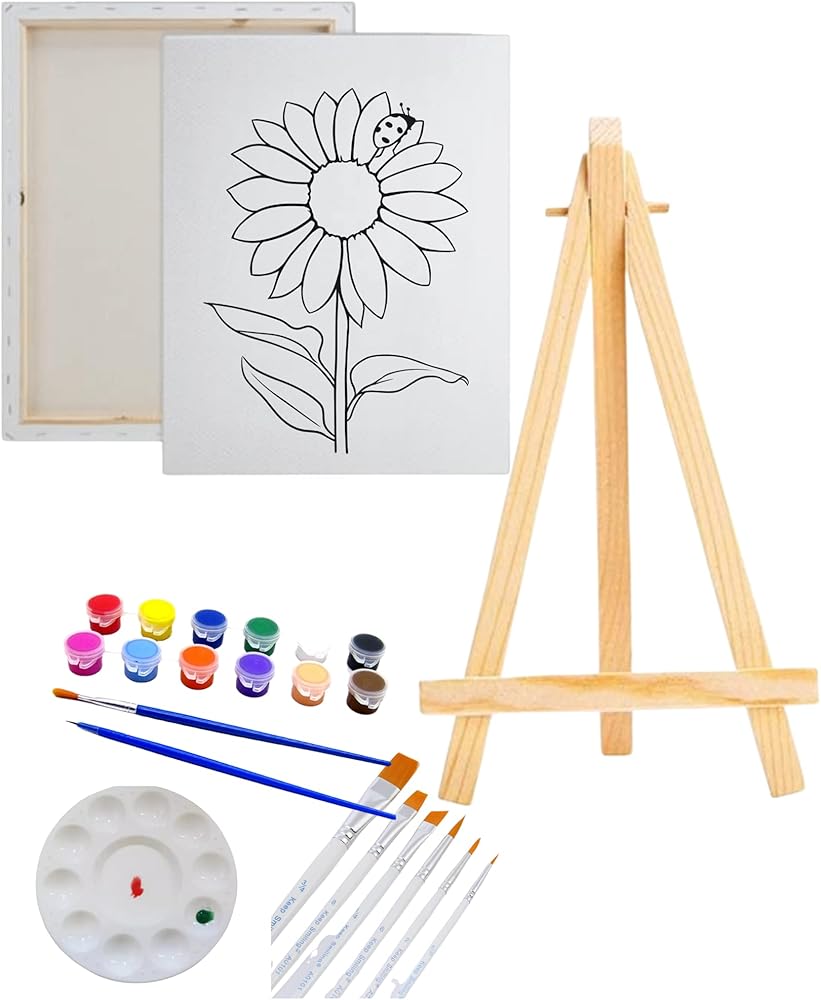 100% قطن ثلاثي الطبقات مع جيسو عالي الجودة خالٍ من الأحماض. تأتي مجموعة الألم مع فرشتين، والقماش على إطار ممتد و13 لونًا من طلاء الأكريليك. وقت المعالجة هو 1-3 أيام عمل