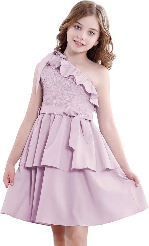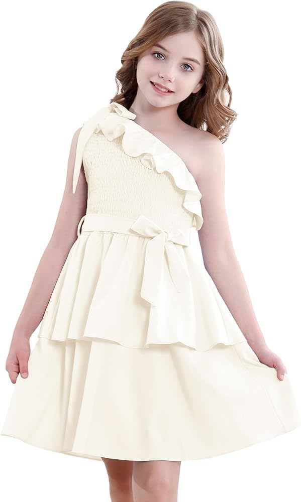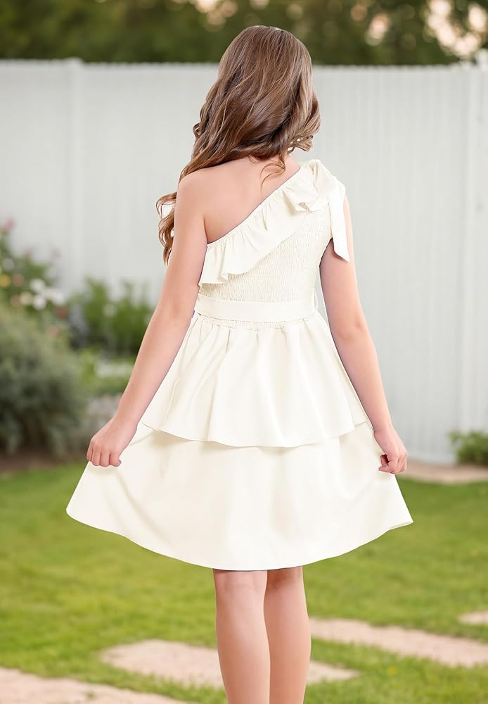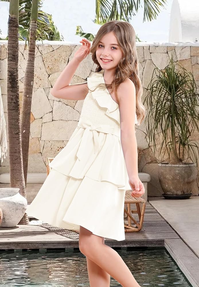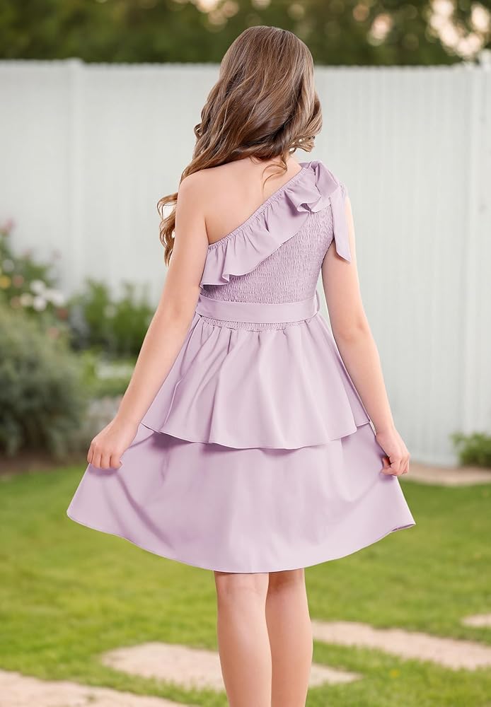 【مناسب تمامًا للفتيات】 مصمم للأعمار من 5 إلى 14 عامًا، هذا الفستان المكشكش بكتف واحد يتكيف مع الفتيات في مرحلة النمو. يضمن الخصر المطاطي والحزام القابل للفصل ملاءمة مرنة ومريحة. سواء كنت تتسوقين لشراء فساتين للأطفال أو المراهقين أو فساتين المراهقات أو فساتين الفتيات المزهرات لحفلات الزفاف، فإن هذا الفستان يوفر الأناقة والراحة.