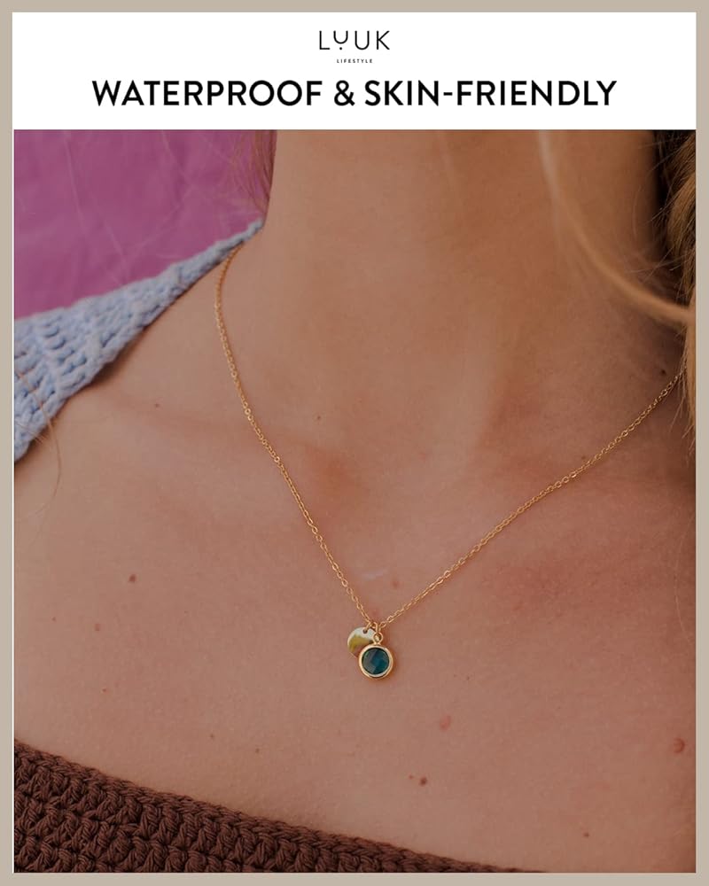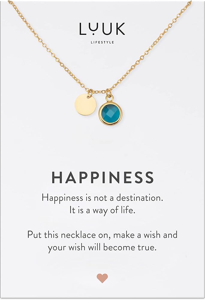 تصميم عصري: قلادة جميلة من الفولاذ المقاوم للصدأ بتصميم خالد وقلادة كريستال زجاجية خضراء، بما في ذلك بطاقة عليها نقش السعادة؛ السلسلة ذهبية اللون. تتميز القلادة بمظهر أنثوي وأنيق ويمكن تنسيقها بطرق مختلفة