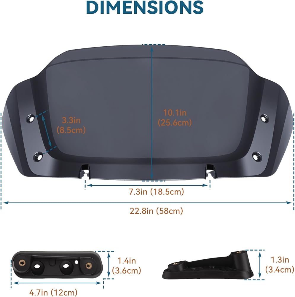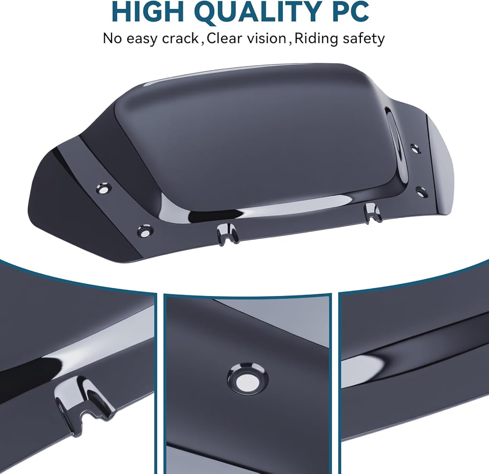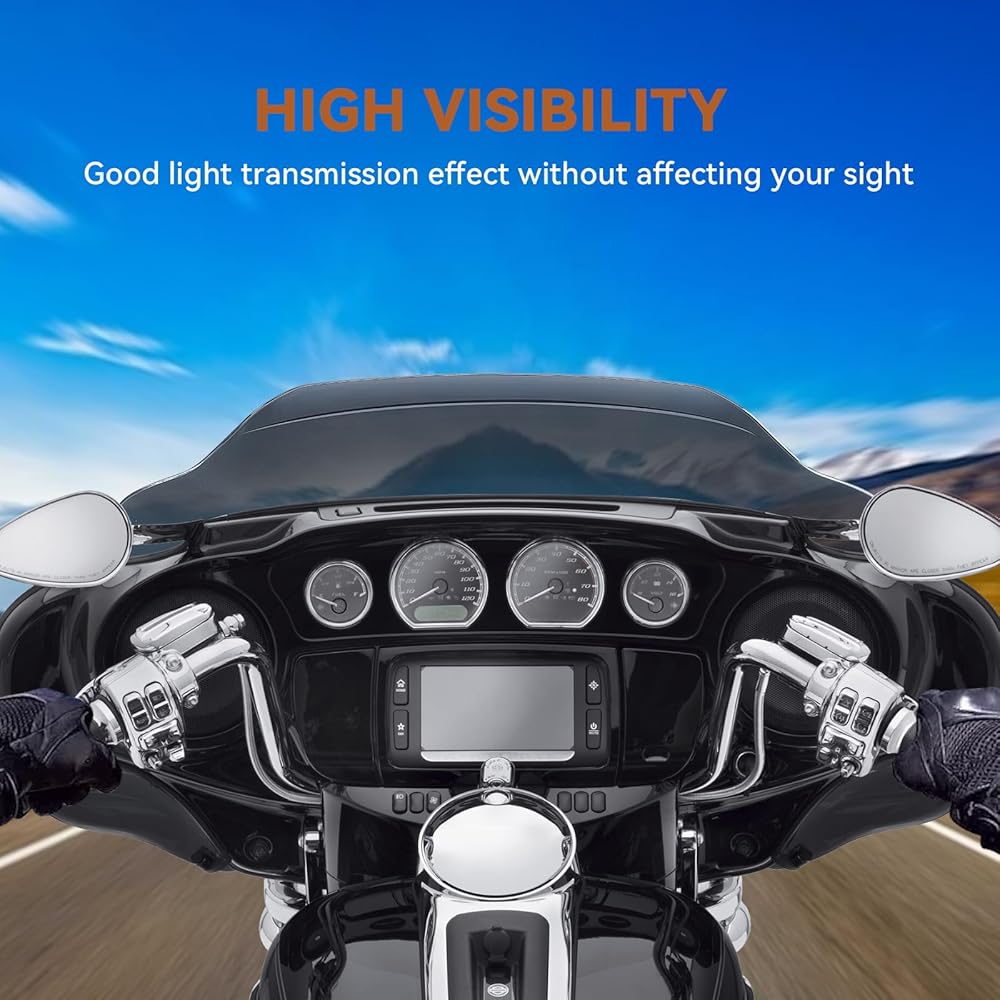 【مادة الزجاج الأمامي】مصنوع من البولي كربونات، تم تصميم هذا الزجاج الأمامي Street Glide مقاس 10 بوصات بقولبة حقن عالية القوة لمقاومة التأثيرات وضمان المتانة. تسمح مرونته الفائقة بالحفاظ على شكله ولونه في جميع الفصول
