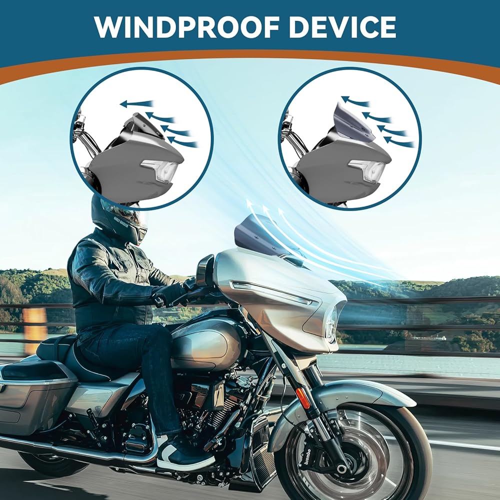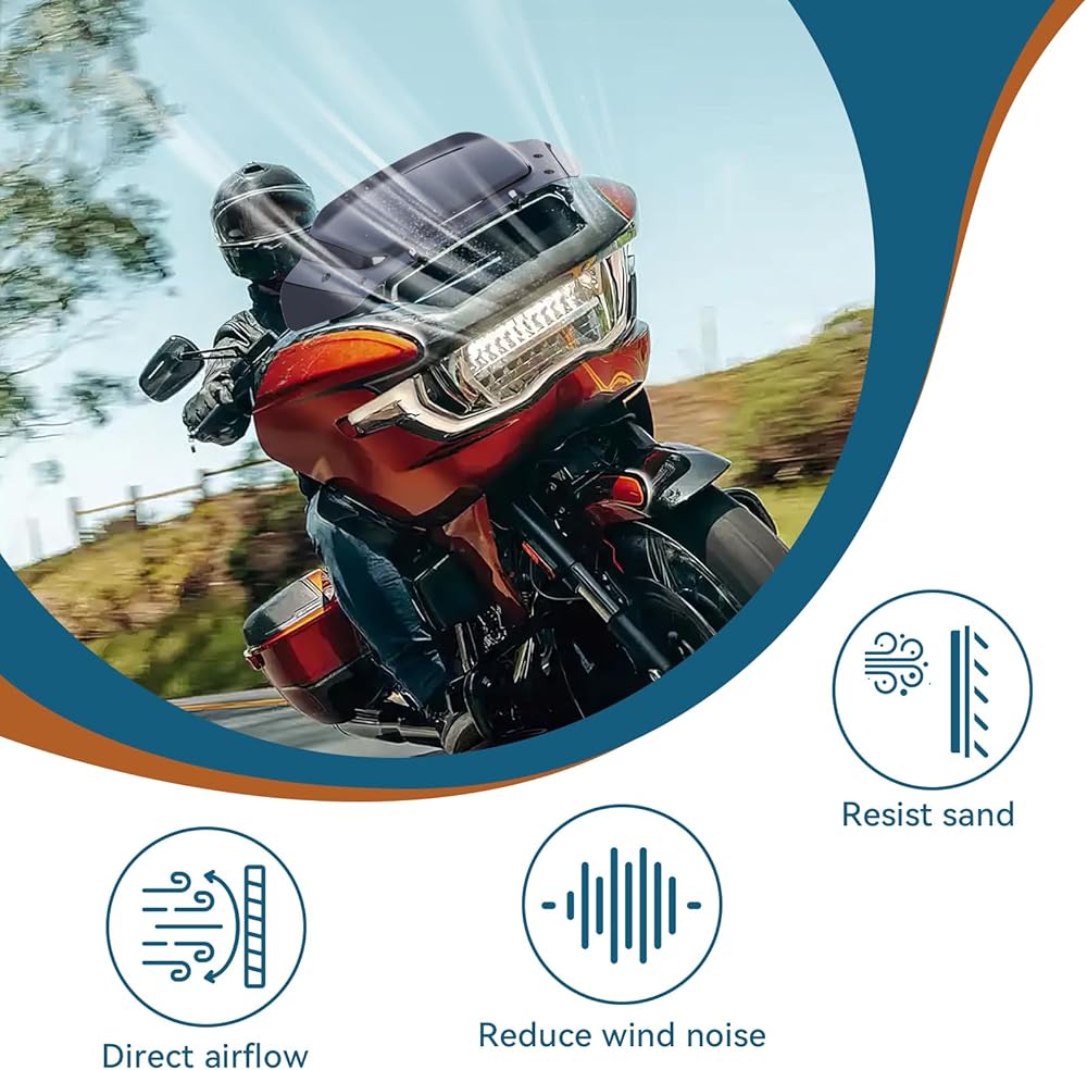 【ميزات درع الرياح】بلاستيك البولي كربونات لضمان مقاومة التأثيرات عالية القوة، وتوفر المنحنيات الانسيابية حماية فائقة من الرياح والتصميم سهل الاستخدام يقلل من ضوضاء الرياح والتعب من أجل تجربة ركوب أكثر متعة.