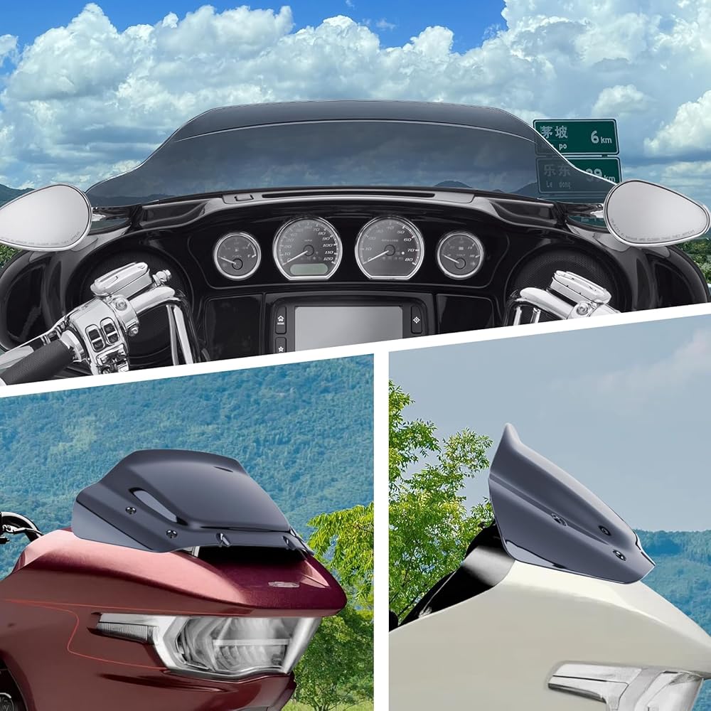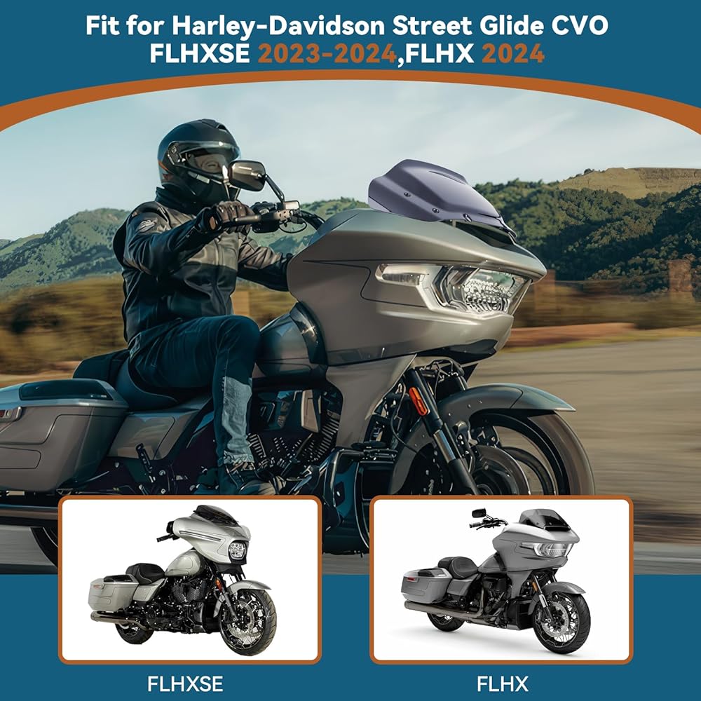【تركيب الزجاج الأمامي】هذا الزجاج الأمامي مقاس 10 بوصات مناسب لموديلات Harley Davidson CVO بما في ذلك Street Glide FLHXSE 2023 2024 2025، وStreet Glide FLHX 2024 2025، وStreet Glide Ultra FLHXU من عام 2025 فيما بعد. مع ارتفاع 10 بوصات (8 بوصات بعد التثبيت)، فإنه يوفر خط رؤية مثالي للراكبين