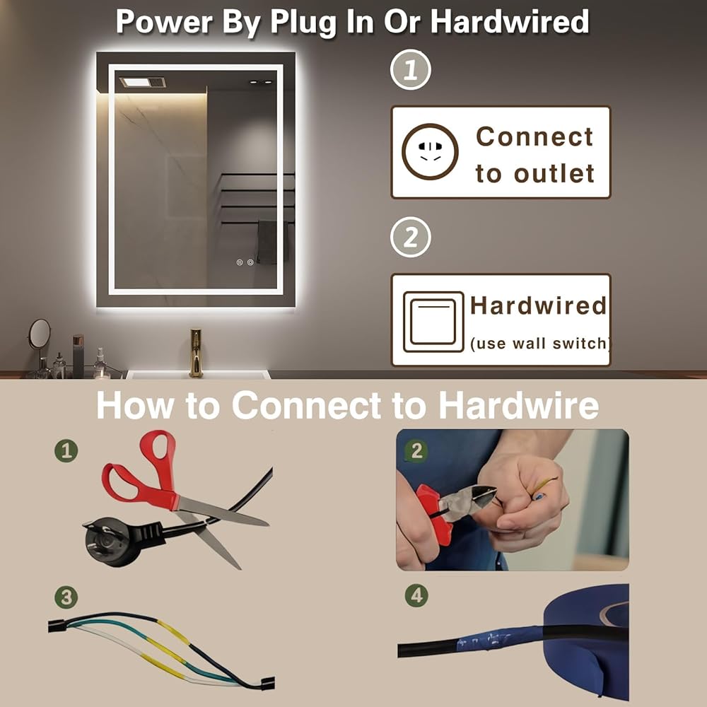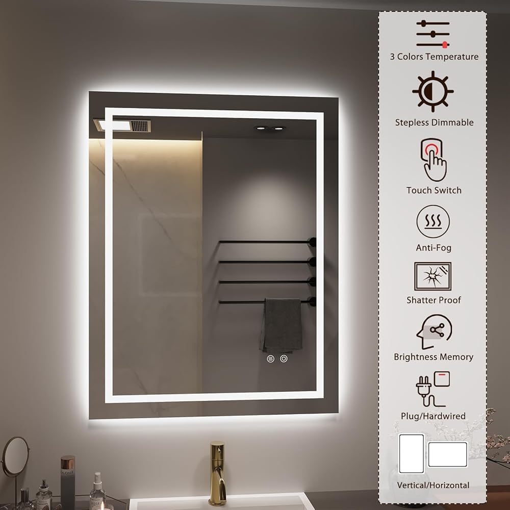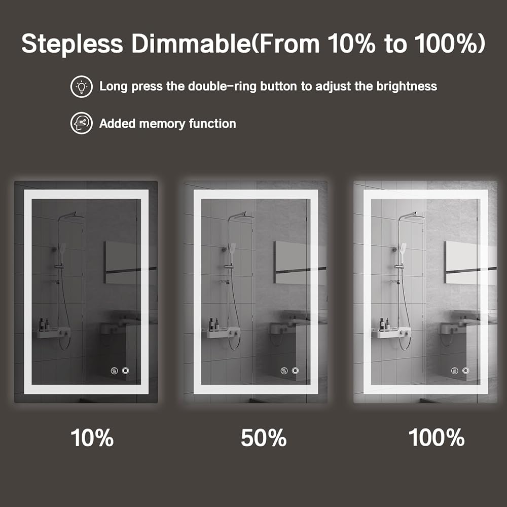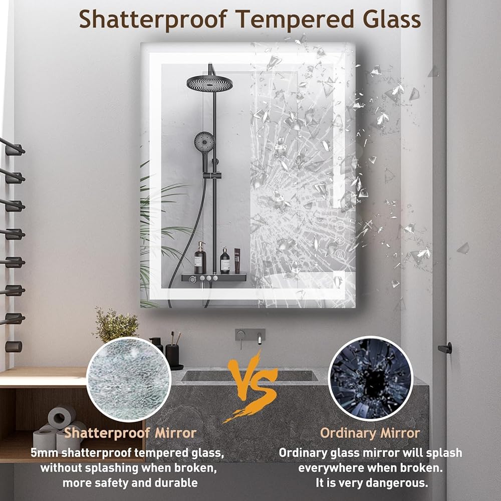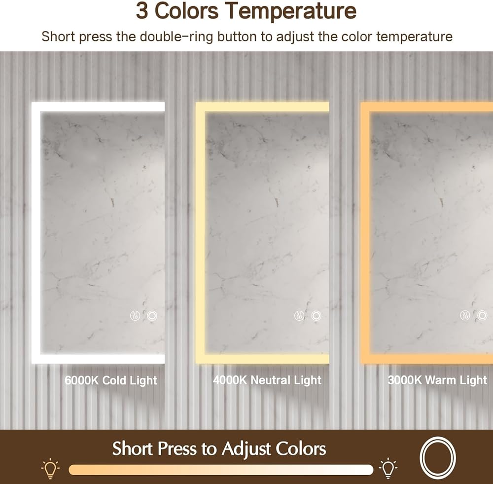 【إضاءة مزدوجة للوضوح التام 】مجهزة بمصابيح LED الأمامية والخلفية، توفر هذه المرآة إضاءة متوازنة وخالية من الظل. مثالية للعناية التفصيلية والمكياج وتجربة حمام مشرقة وراقية.