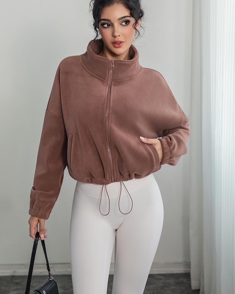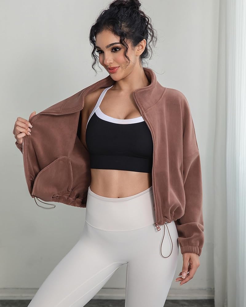 • نسيج الصوف القطبي فائق النعومة: مصنوع من 90% بوليستر و10% ألياف لدنة، توفر سترتنا الصوفية القصيرة الدفء والراحة خلال فصلي الخريف والشتاء. يضمن التصميم عالي التهوية الراحة والتهوية سواء كنت تمارس الرياضة أو ترتديه يوميًا. من السهل العناية به ومتعدد الاستخدامات بشكل أنيق لأي مناسبة.