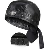 قبعة جلدية لراكبي الدراجات النارية على شكل جمجمة قابلة للتعديل، قبعة دو خرقة باندانا باللون الأسود