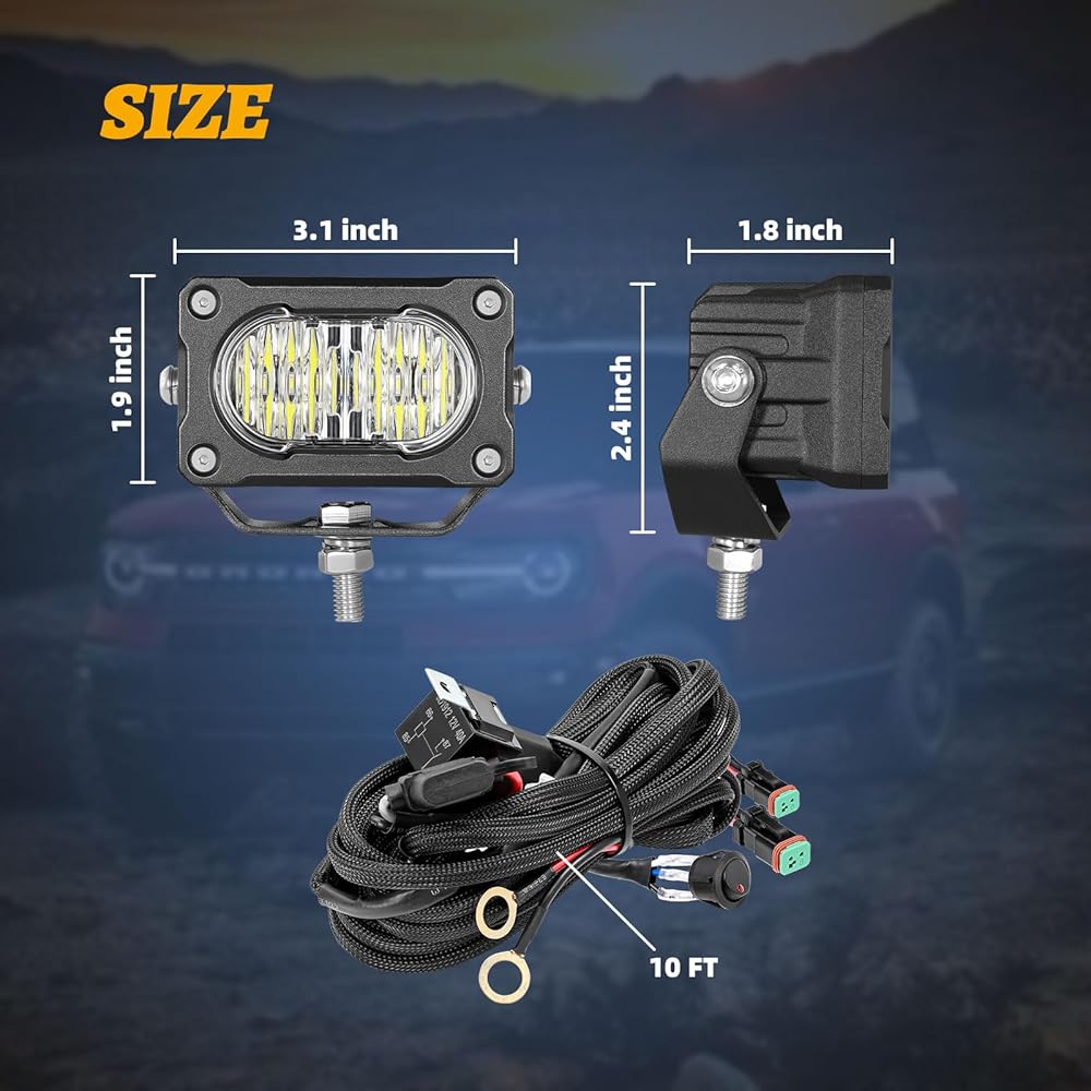 سطوع محسّن - باستخدام رقائق CREE LED القوية، مصابيح القيادة LED مقاس 3 بوصات التي تعمل بـ 4 قطع مصابيح LED عالية الكثافة بقدرة 10 واط تنبعث منها 40 واط و4000 لومن لكل زوج، ضوء ساطع للغاية 6000 كلفن للحصول على أفضل رؤية يمكنك الحصول عليها في الليل.