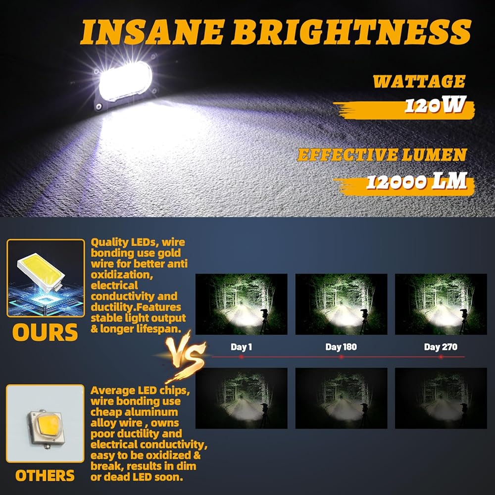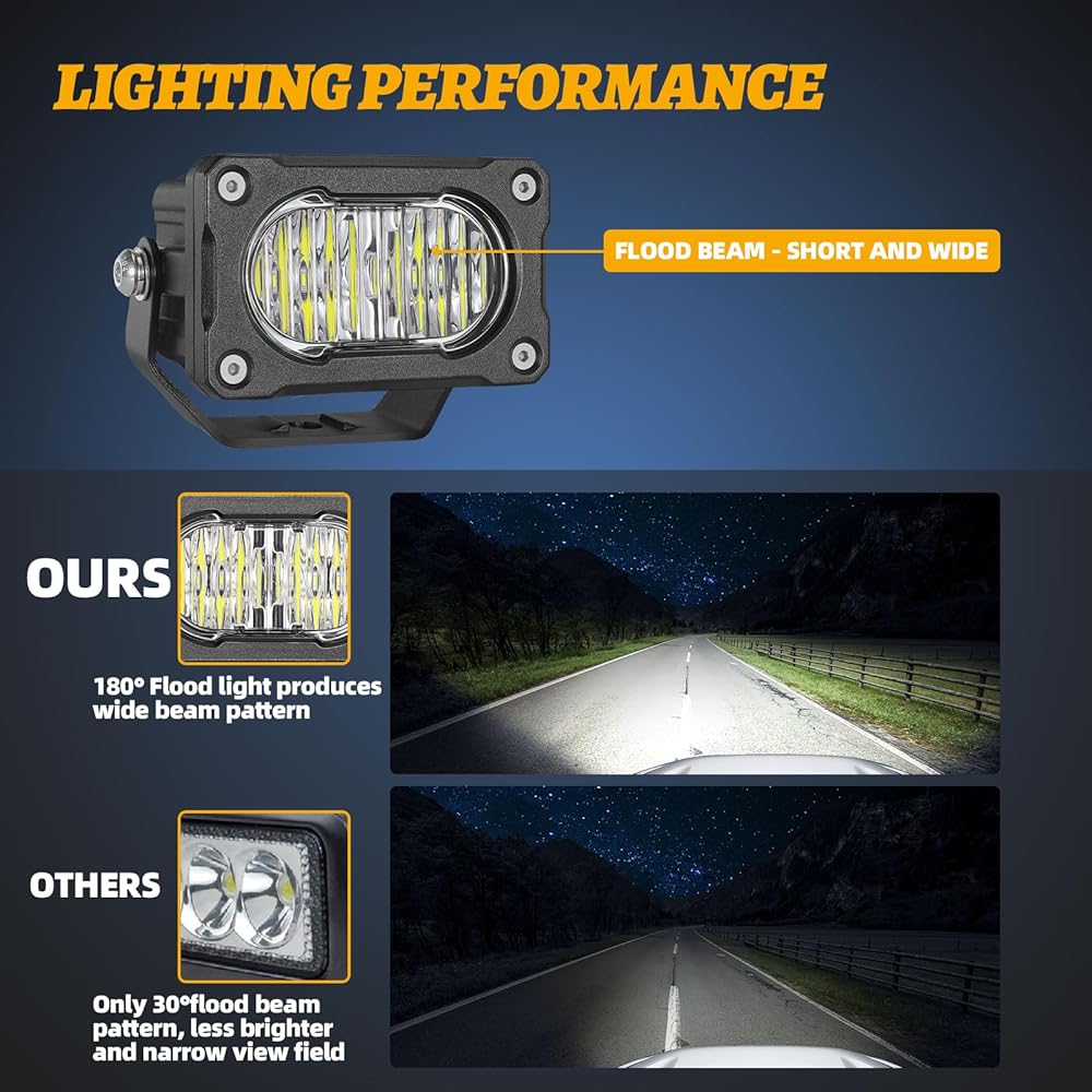 شعاع فلود - ضوء فيضان 170 درجة، يمكن للمكعبات تحسين رؤيتك بشكل كبير على مسافة أوسع وأبعد، لا مزيد من الخوف من البقع الداكنة. مثالية لمصابيح ممتص الصدمات للشاحنات، فهي تخترق الظلام مع الحفاظ على استهلاك منخفض للطاقة - أكثر سطوعًا بنسبة 20% من مصابيح المكعب القياسية مقاس 3 بوصات بنفس القوة الكهربائية.