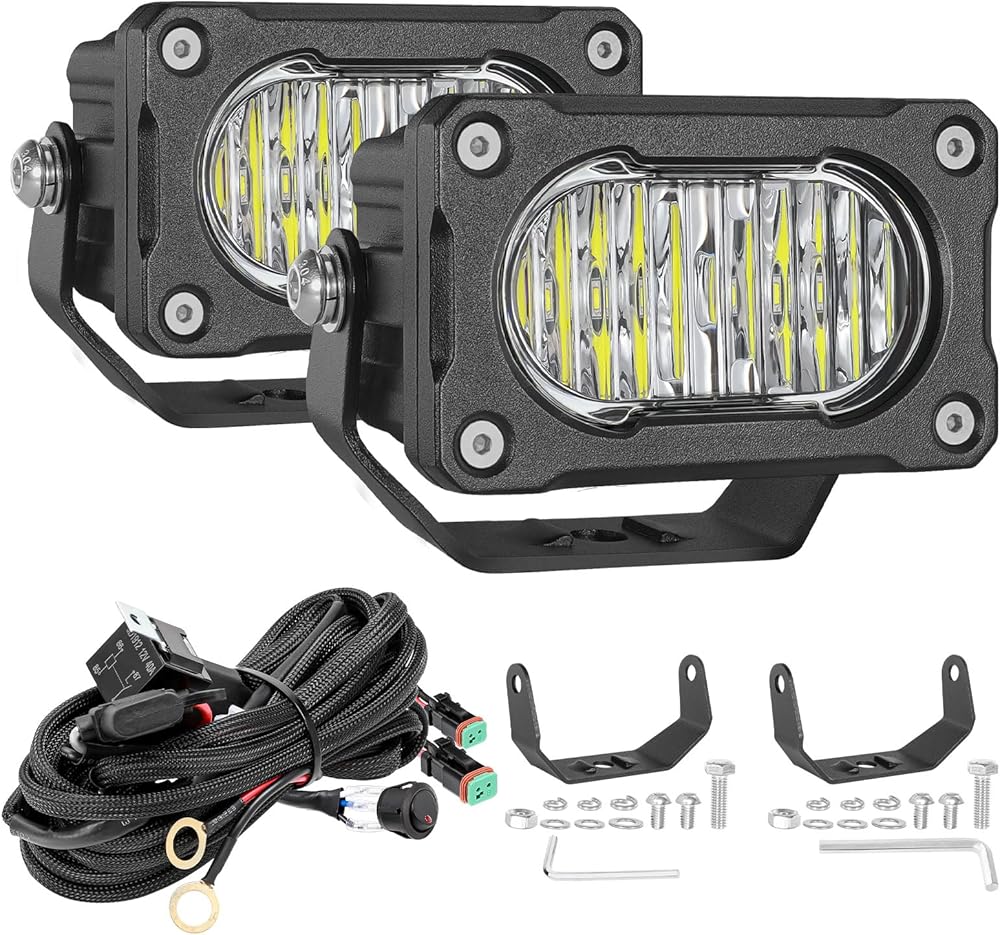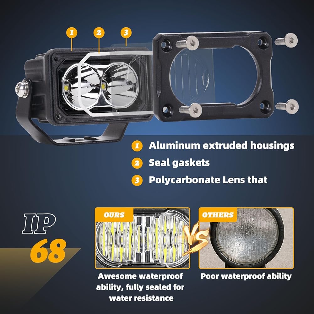 تركيب فلوش، رياح منخفضة - يأتي مع وسادة مطاطية لسهولة الفتح وتركيب فلوش مقاوم للصدمات، يقلل سحب الرياح بشكل أفضل، يبدو كما لو أنه من المفترض أن يكون في وضع OEM، وأضواء مناسبة جدًا للنسخ الاحتياطي، وإضاءة التشغيل، ومصباح مساعد، وإضاءة انتظار السيارات، وإضاءة الحديقة والمزيد. مناسب لجميع سيارات الجيب وعربة الجولف و4x4 والسيارات شديدة التحمل وسيارات الدفع الرباعي وATV وUTV والشاحنات والقوارب