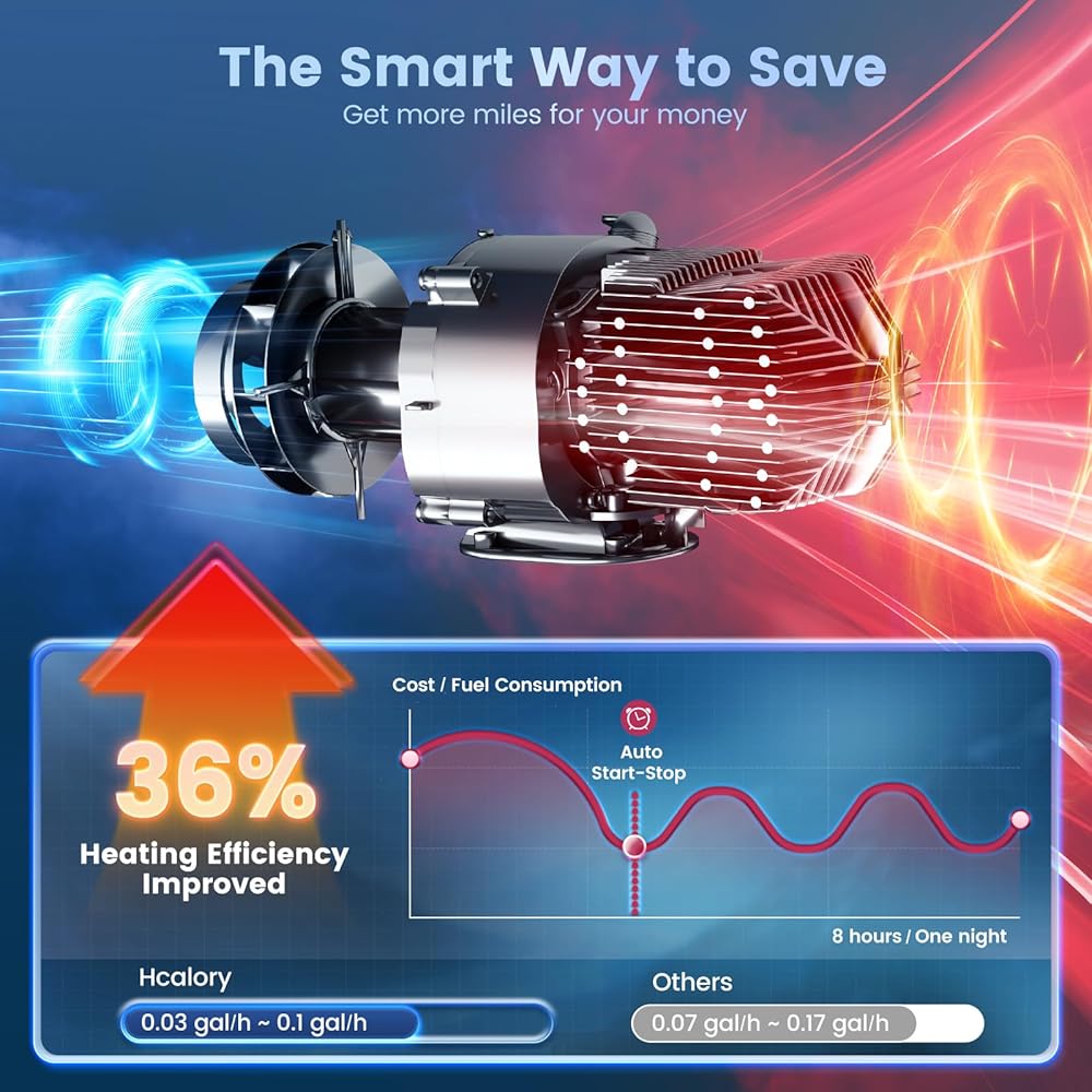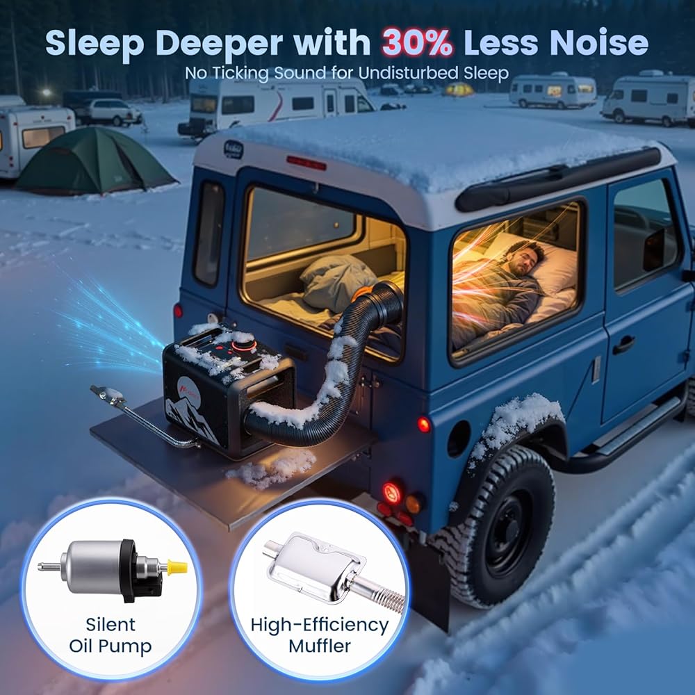 【تشغيل هادئ مع مضخة الوقود الصامتة】 يظل منفذ مجرى الهواء مصدر الضوضاء الأساسي (65 ديسيبل، أي ما يعادل المحادثة العادية)، ولكن مضخة الوقود الصامتة المطورة لدينا تزيل أصوات القرقعة المزعجة الموجودة في السخانات التقليدية. مثالية للنوم المتواصل في الشاحنات أو الكبائن أو الخيام. استمتع بالدفء الموثوق به طوال الليل، دون إزعاج المدفأة.