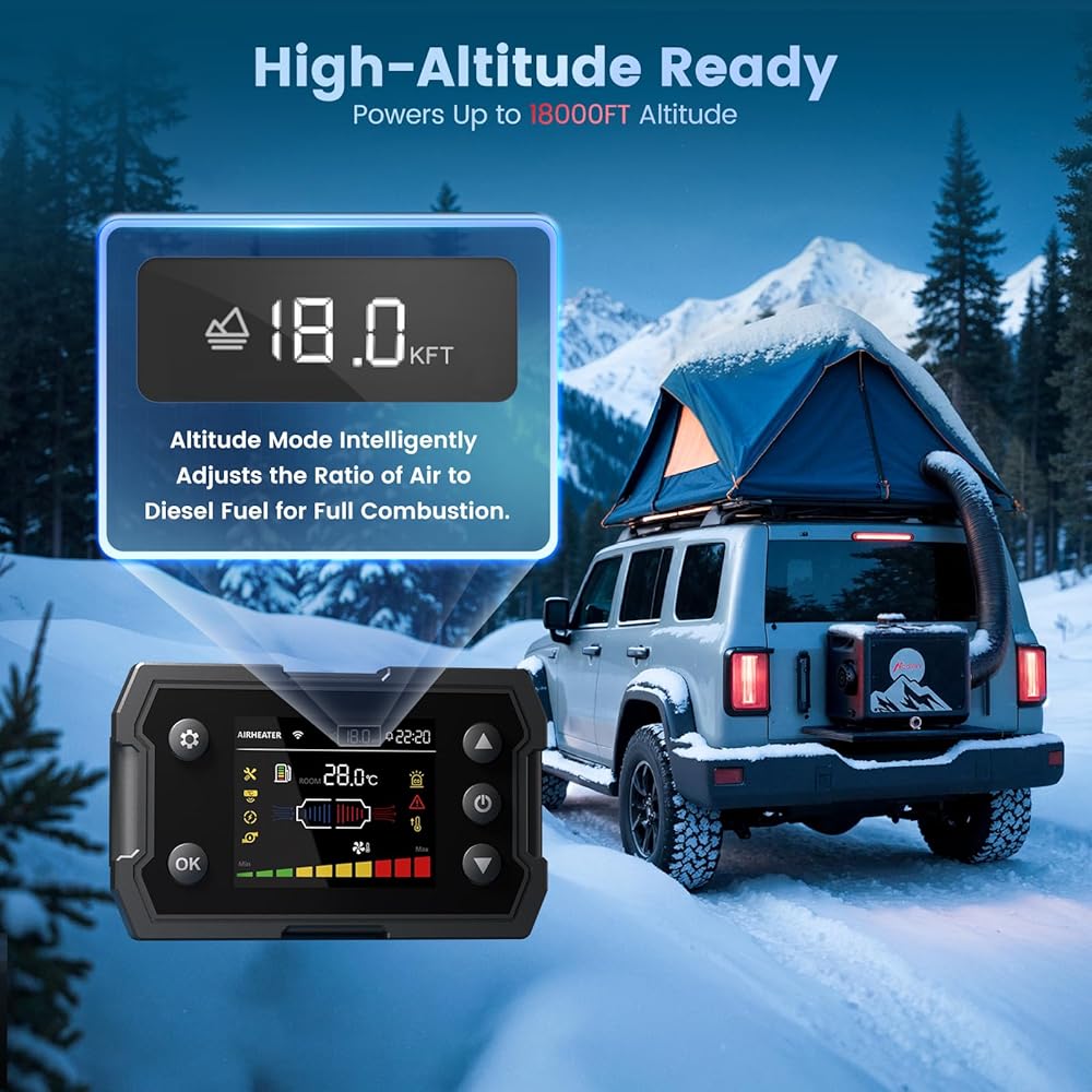 【أداء متكيف لجميع التضاريس】لا تفقد الكفاءة أبدًا على ارتفاعات عالية. يقوم السخان الخاص بنا بضبط احتراقه تلقائيًا للحصول على الأداء الأمثل حتى 18000 قدم، مما يضمن إنتاج الحرارة الكاملة والاقتصاد في استهلاك الوقود في التضاريس الجبلية. يضمن هذا التكيف الذكي الدفء الموثوق به سواء كنت تتسلق على ارتفاعات عالية أو في موقع عمل بعيد في جبال الألب.