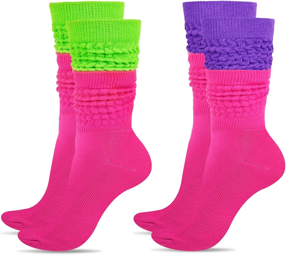 Package Includes: You will receive 2 pairs thick scrunchie socks in hot pink lime green and hot pink purple color, very bright and eye-catching, add a pop of fun, personality and enthusiasm to your vintage outlooks. Great neon accessories for nostalgia lovers and fashion-forward individuals.