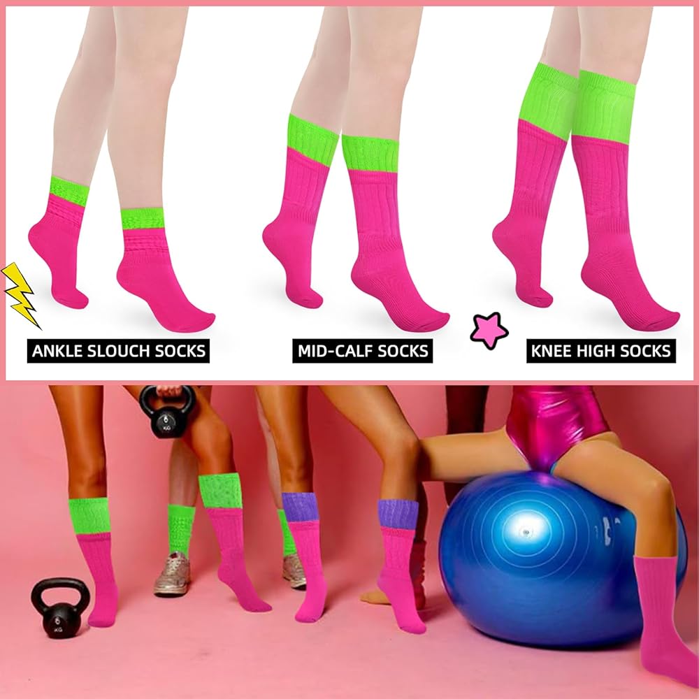80s 90s Neon Slouch Socks - Ideal Accessories for Fans of the Vintage Era