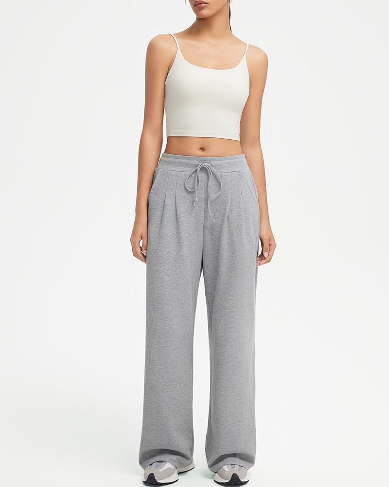 - بنطال مرن برباط عالي الخصر: بنطال وافل برباط مع جيبين جانبيين، بنطال عمل بحزام خصر مرن عالي الخصر