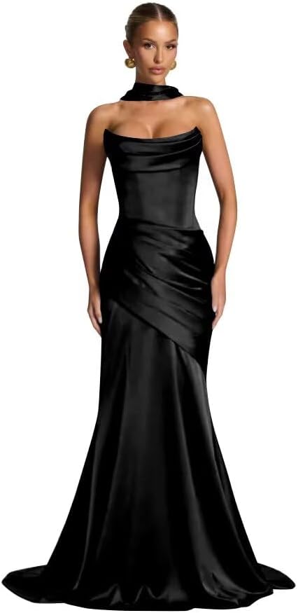 【المميزات】فساتين حفلة موسيقية من الساتان 2025، فساتين حفلة موسيقية حورية البحر للنساء مع وشاح، فستان حفلات رسمي طويل، طراز ضيق، تصميم عالي الخصر، سحاب، بدون شق، حمالة صدر مدمجة، مريحة في الارتداء. فستان الحفلة الراقصة هذا الذي يعود إلى الثمانينيات هو أفضل فستان رسمي لحفلات المساء!