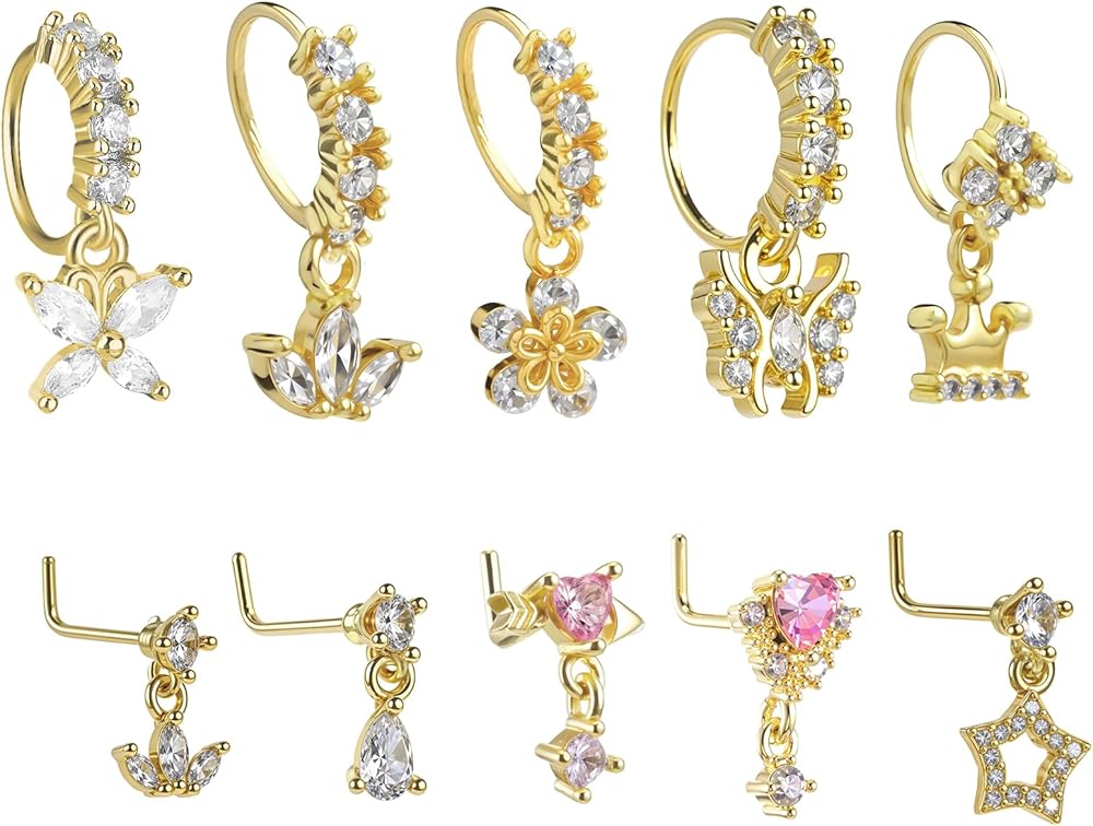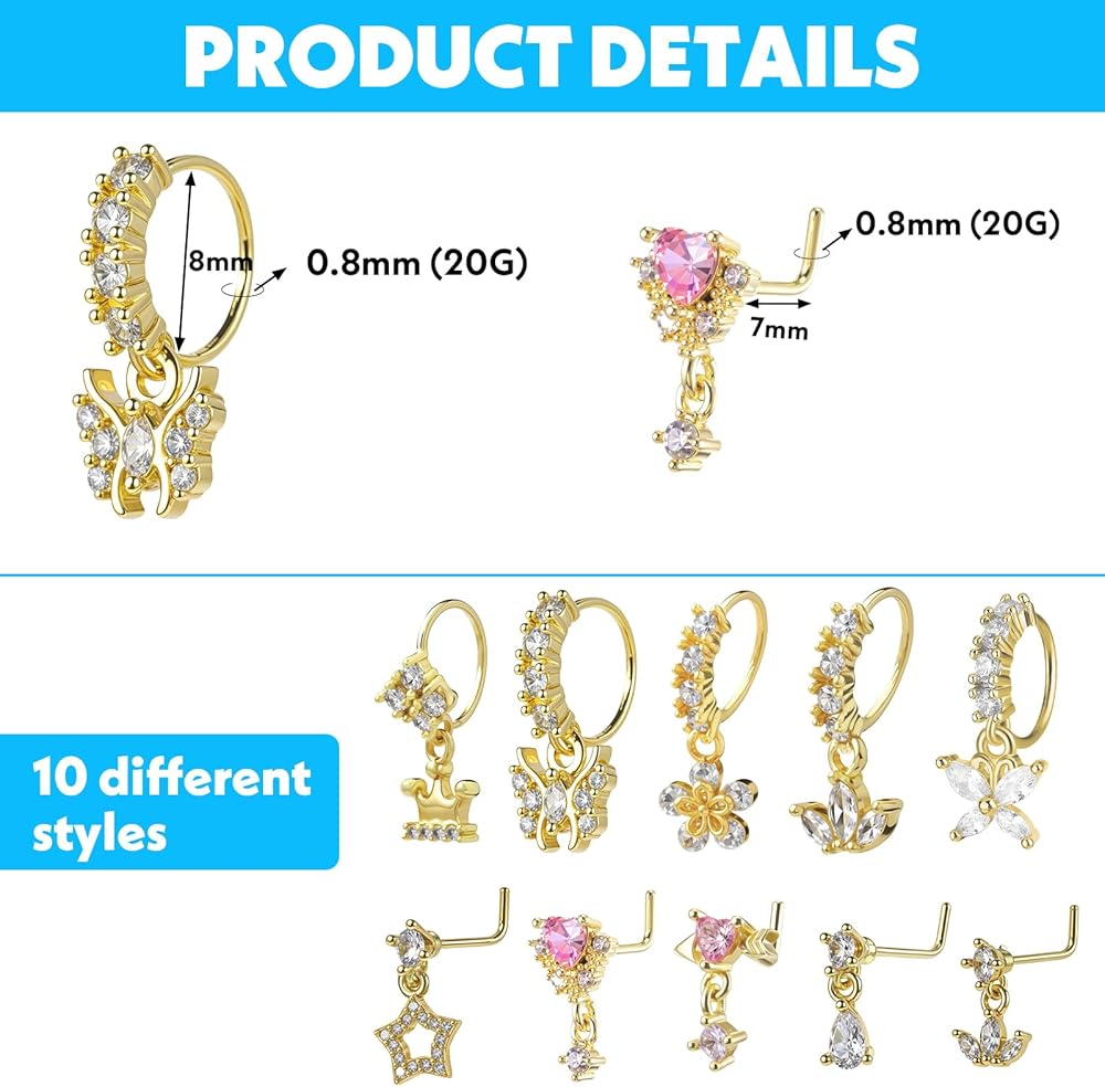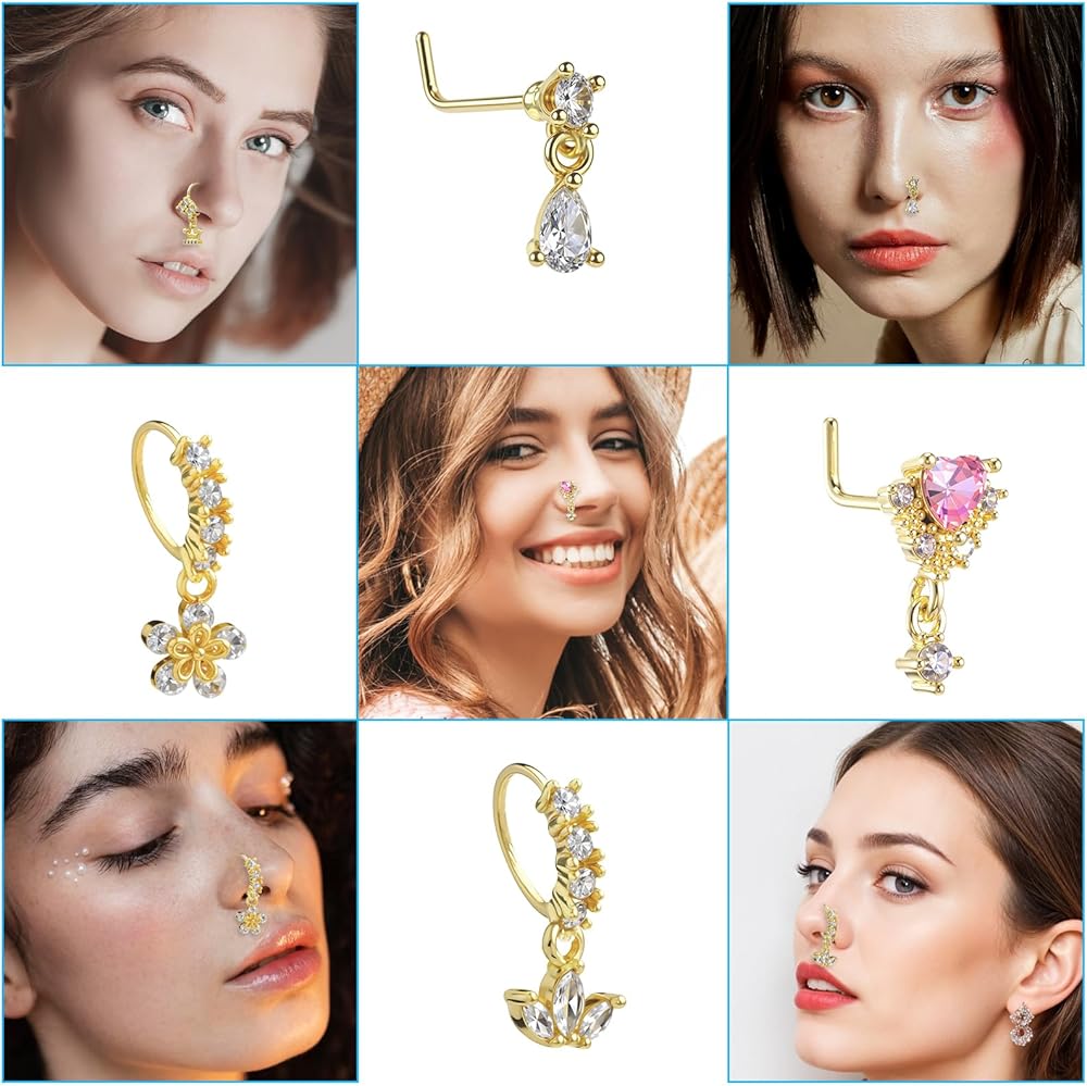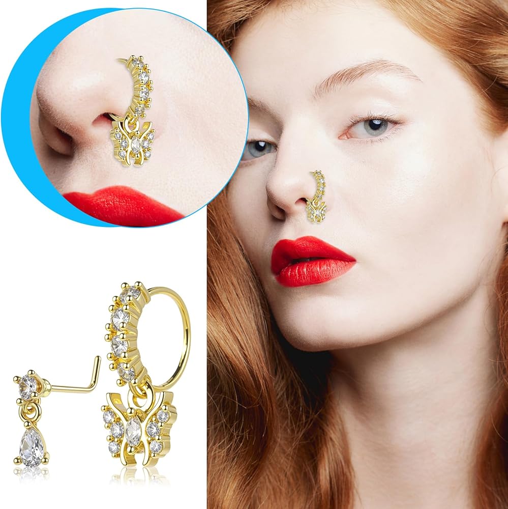 These nose piercing jewelry kits can be used as nose ring hoops, nose ring studs, nose piercing studs, nose studs, nostril piercing ring hoops, and nose studs can also be used as lip rings or other piercing jewelry. These beautiful and fashionable dangly nose rings for women are the perfect gift for your mother, wife, or friends to express your love for Christmas, birthdays, anniversaries, Mother's Day, Valentine's Day, graduations, or weddings.