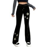 السمات: ملابس الخروج، ملابس المشهد، سراويل اليوغا، السراويل الفضفاضة، السراويل ذات الخصر المرن، السراويل ذات الرباط، سراويل اليوجا ذات الرقبة الطويلة تتميز بنمط نجمة الراين المتلألئة، مما يضيف لمسة جريئة وفريدة من نوعها. مع تصميم منخفض الارتفاع وساق واسعة، فهو مثالي لزي الديسكو وبنطلون Y2k.
