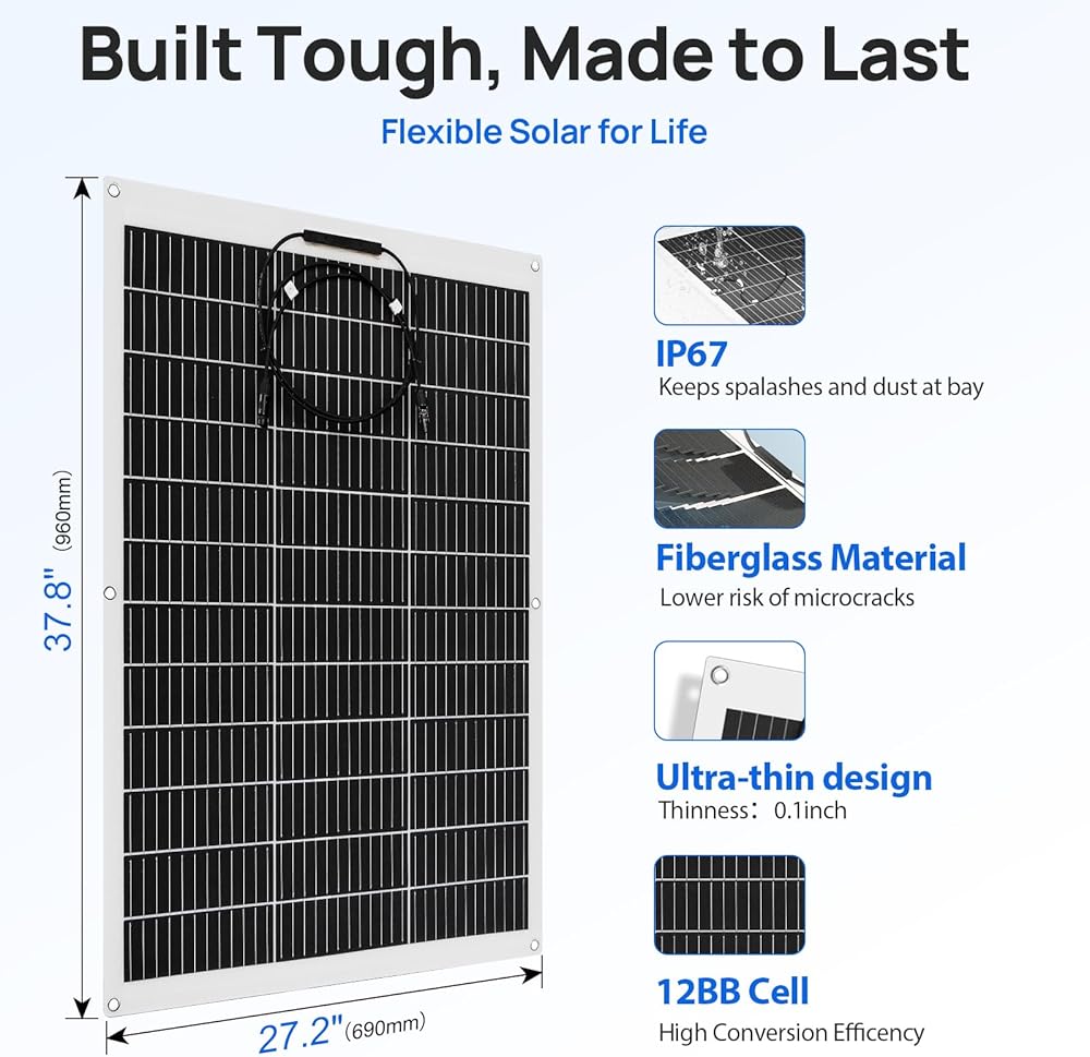 [طاقة الإخراج 1.04 كيلو وات · ساعة في اليوم]: يعتمد الإخراج اليومي 1040 وات في الساعة على توفر ضوء الشمس، مثالي للمركبات الترفيهية أو المنزل أو القارب أو التخييم أو الكارافان أو سيارة الجولف أو السيارة الكهربائية أو اليخت أو القارب أو الخيمة أو حقيبة الظهر وما إلى ذلك