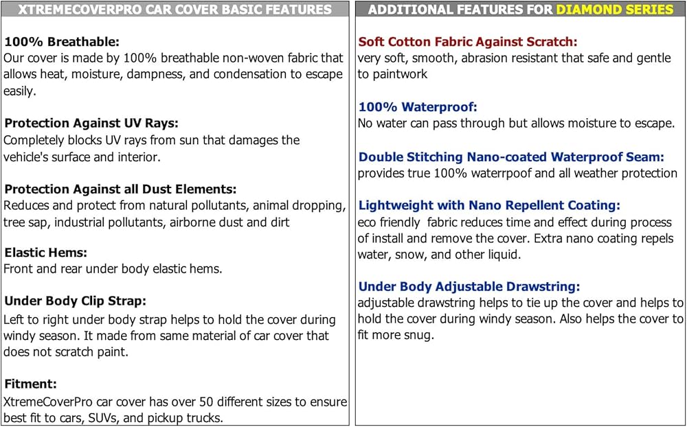 The XCP XtremeCoverPro line of automotive covers was created with the customer in mind. Offering top-of-the-line UV protection and unmatched warranties across all other brand. This cover is made to protect your vehicle