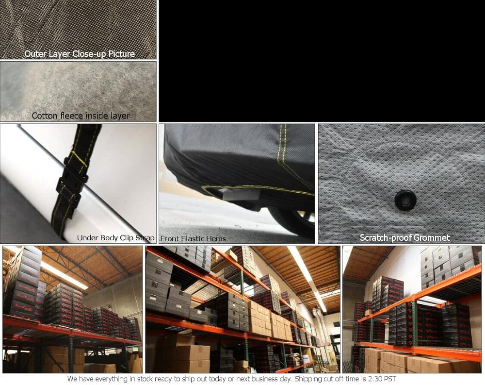Under Body Clip Strap: Left to right under body strap helps to hold the cover during windy season. It made from same material of car cover that does not scratch paint.