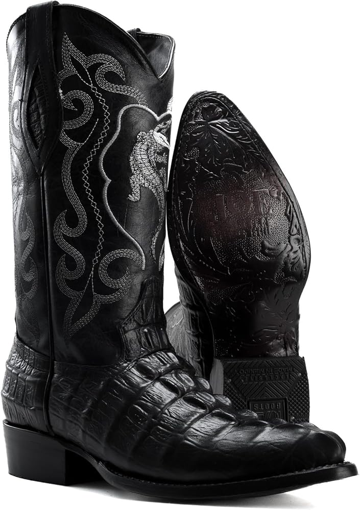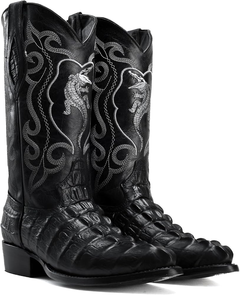 Step into style and comfort with these genuine leather caiman cowboy boots, perfect for the rodeo or everyday wear. Crafted from premium leather, these boots offer a distinctive texture and long-lasting durability. The handcrafted design features detailed embroidery along the shaft, adding a touch of Western flair, while the cushioned insole ensures all-day comfort. With a durable leather outsole and a sturdy heel, these boots are built to handle tough terrain, making them perfect for ranch work, riding, or a night out. Elevate your Western wardrobe with these authentic caiman print cowboy boots.