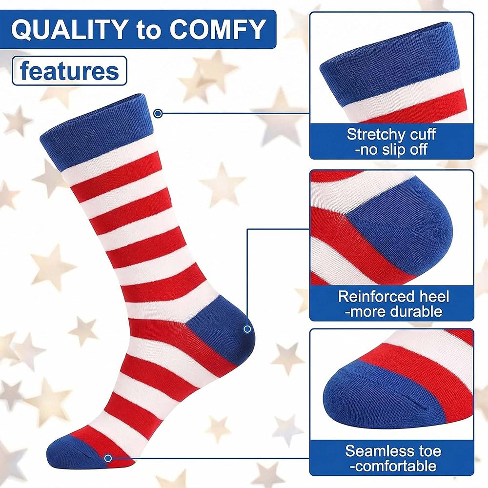 هدية وطنية: الجوارب القطنية الأمريكية هي اختيار مثالي للهدايا لعائلتك وأصدقائك. مثالي لعيد الميلاد، أو عيد الأب، أو عيد الاستقلال الأمريكي (4 يوليو)، أو الذكرى السنوية، أو الزفاف، أو الكريسماس، أو عيد الحب، أو عيد الشكر أو غيرها من الأيام الوطنية الخاصة. يمكنك دائمًا الحصول على مجموعة من جوارب هدايا العلم الأمريكي لعائلتك وأصدقائك وزملائك في الصف ورفقاء العريس وكذلك زملائك