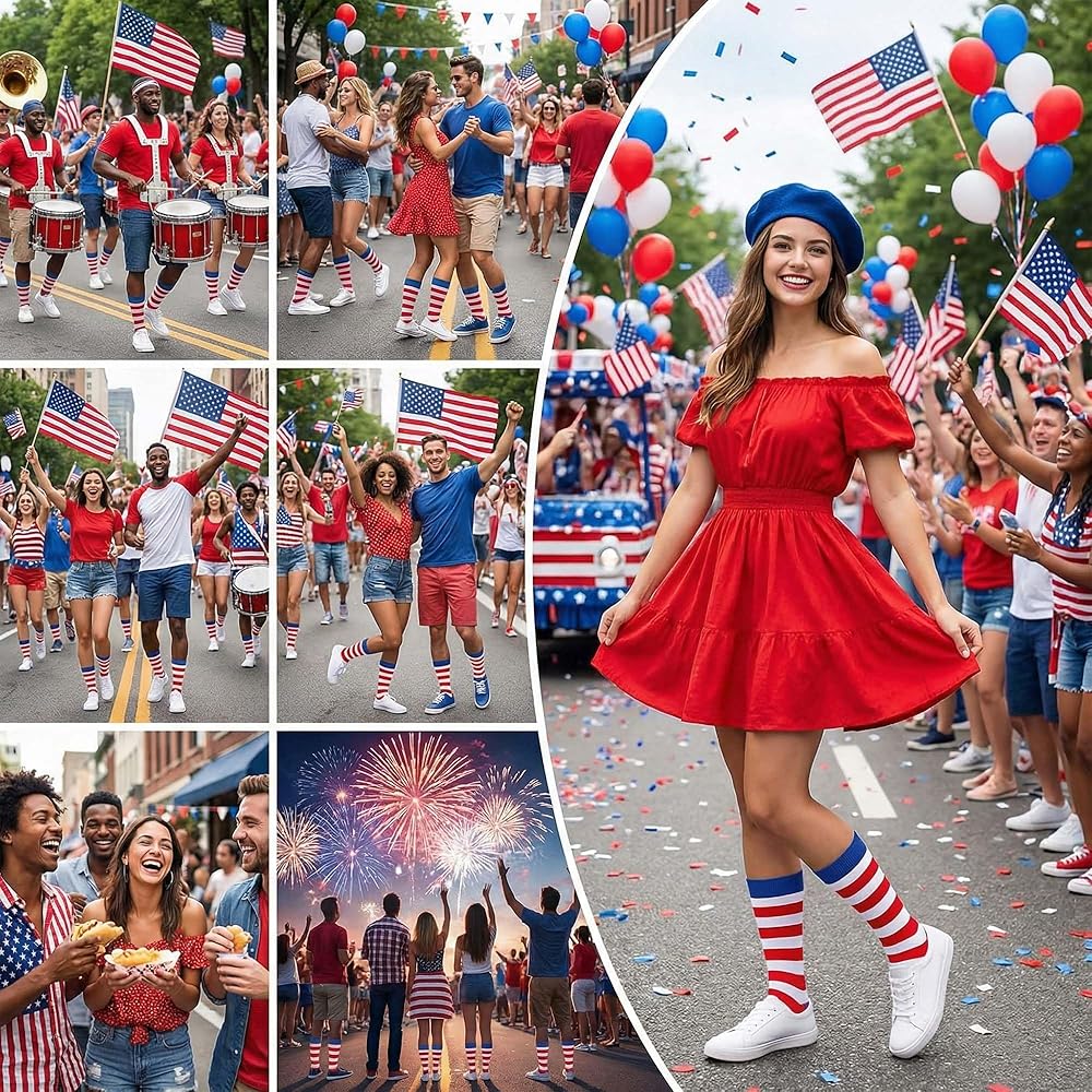جوارب مخططة: تتميز الجوارب الوطنية بتصميم خطوط حمراء وبيضاء وزرقاء يضفي إحساسًا غير عادي بالأناقة في البساطة، مما يجعلها مثالية لإظهار شخصيتك الفريدة.