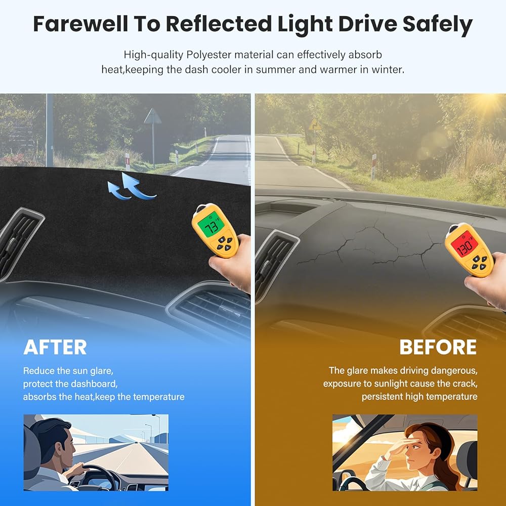 حماية شاملة لغطاء لوحة أجهزة القياس: يخدم غطاء لوحة أجهزة القياس من Escalade أغراضًا متعددة: فهو يحمي من وهج الشمس، ويقلل من تراكم الحرارة داخل السيارة، ويحمي لوحة أجهزة القياس الخاصة بك من الأشعة فوق البنفسجية، مما يحافظ على تجربة القيادة الخاصة بك مريحة وآمنة ويمنع الشيخوخة المبكرة والضرر