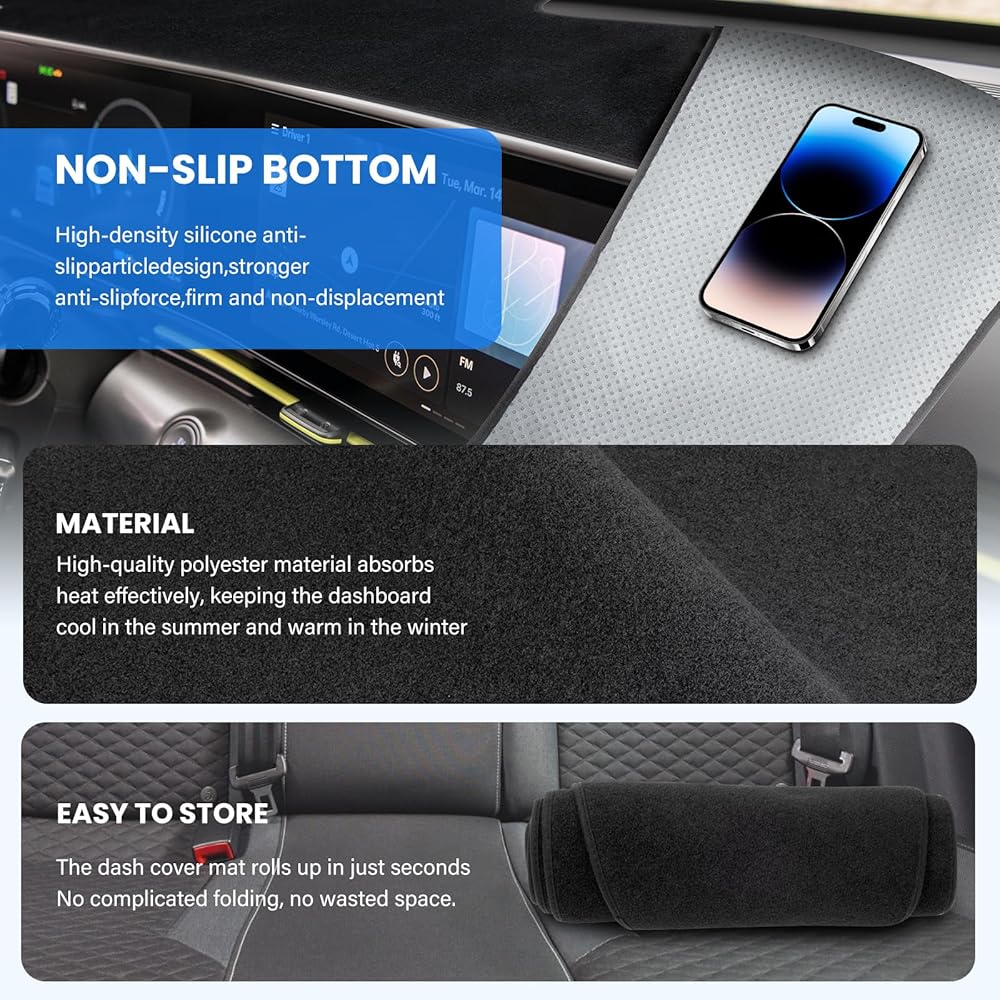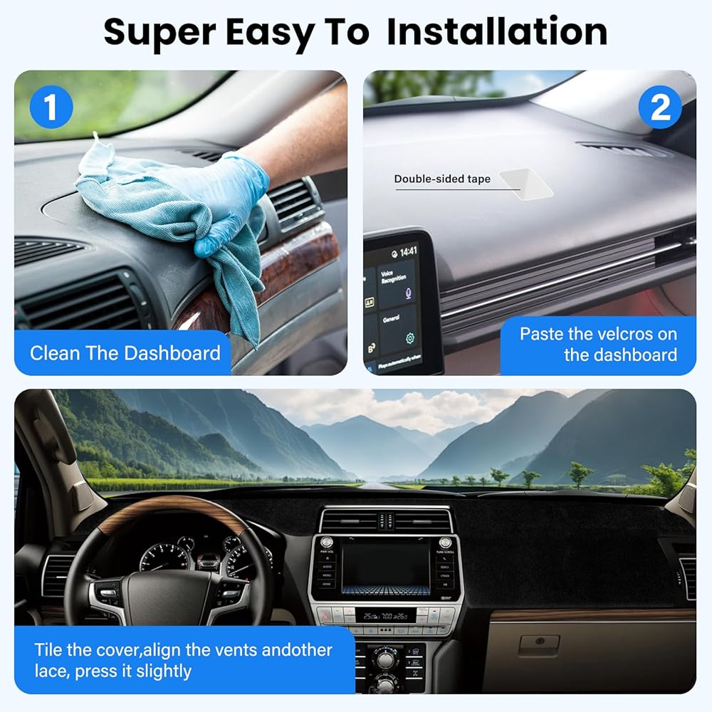 تصميم مانع للانزلاق: مصمم بنقاط صغيرة من السيليكون الكثيف على الجانب الخلفي، يتميز غطاء لوحة القيادة الخاص بنا بأنه غير قابل للانزلاق يمكنه مقاومة الانزلاق بشكل أفضل، مما يجعله غير قابل للإزاحة. لا توجد حاجة إلى مواد لاصقة، ولا تتطلب أي تعديلات على سيارتك. لكن سجادة غطاء لوحة القيادة الخاصة بنا تأتي مع أشرطة فيلكرو لتثبيت السجادة