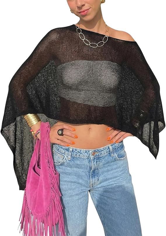 • Trendy Match: Sheer thin hollow out sweater pullover shirt is trendy to matching with bralettes and jeans for chic streetwear. A good layering clothes for bikini outfits