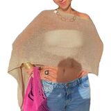 Women Knit Cover-up, See-through Solid Irregular Loose Pullover Summer Beach Tops black/white/blue/green/purple