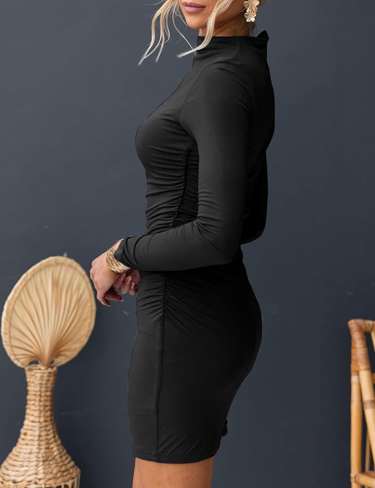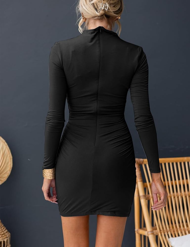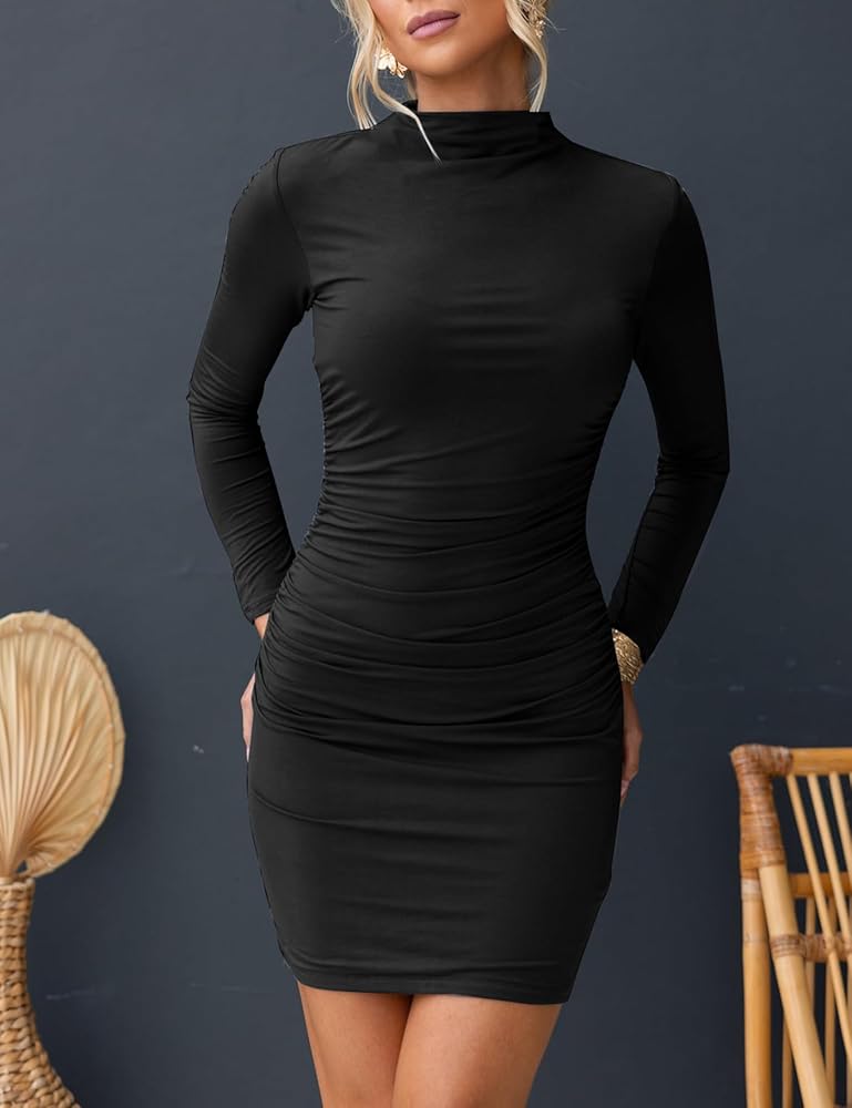 خامة مريحة وناعمة: هذا الفستان القصير المثير بأكمام طويلة ورقبة وهمية مصنوع من 95% بوليستر فائق الجودة و5% ألياف لدنة، المادة ناعمة وصديقة للجلد، ومسامية، وخفيفة، ومزدوجة الطبقات ولا يمكن رؤيتها من خلالها. يمكنك ارتداؤه في أي مناسبة وإظهار سلوكك الأنيق وإبراز منحنياتك الجميلة، ويمكن للتجاعيد عند الخصر أن تضفي مظهرًا جذابًا على شكلك وتخفي اللحم حول بطنك، مما يجعلك الشخص الأكثر إبهارًا بين الناس.