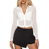 المواد: جزء علوي شفاف من YOINS، مصنوع من البوليستر والألياف اللدنة، نسيج ناعم وقابل للتمدد، صديق للبشرة، خفيف الوزن، مريح في الارتداء. القمصان الشفافة للنساء مناسبة لجميع المواسم