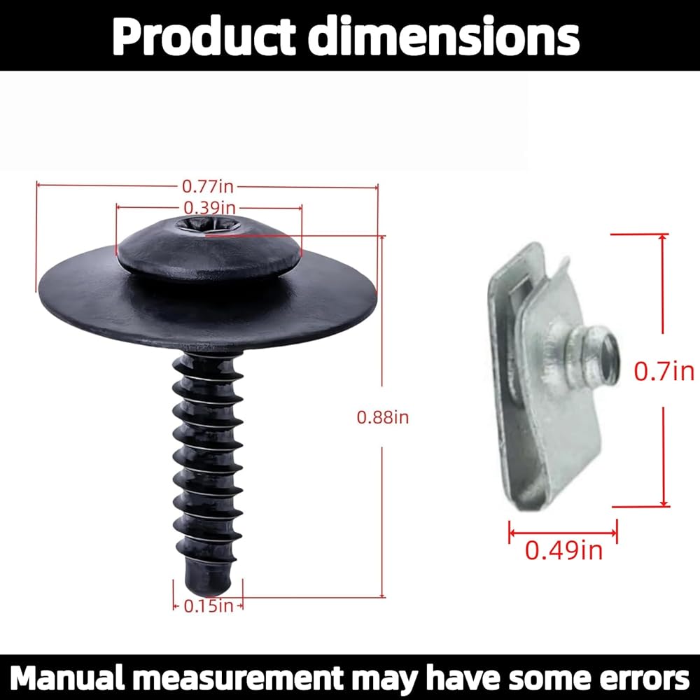 11548270 Fender Liner Splash Shield Bolt Screw Nut 11548270 متوافق مع GM شيفروليه كامارو إكوينوكس إمبالا ماليبو كولورادو كروز ترافيرس كاديلاك XT5 XTS ATS CT6 CTS 20 مجموعة