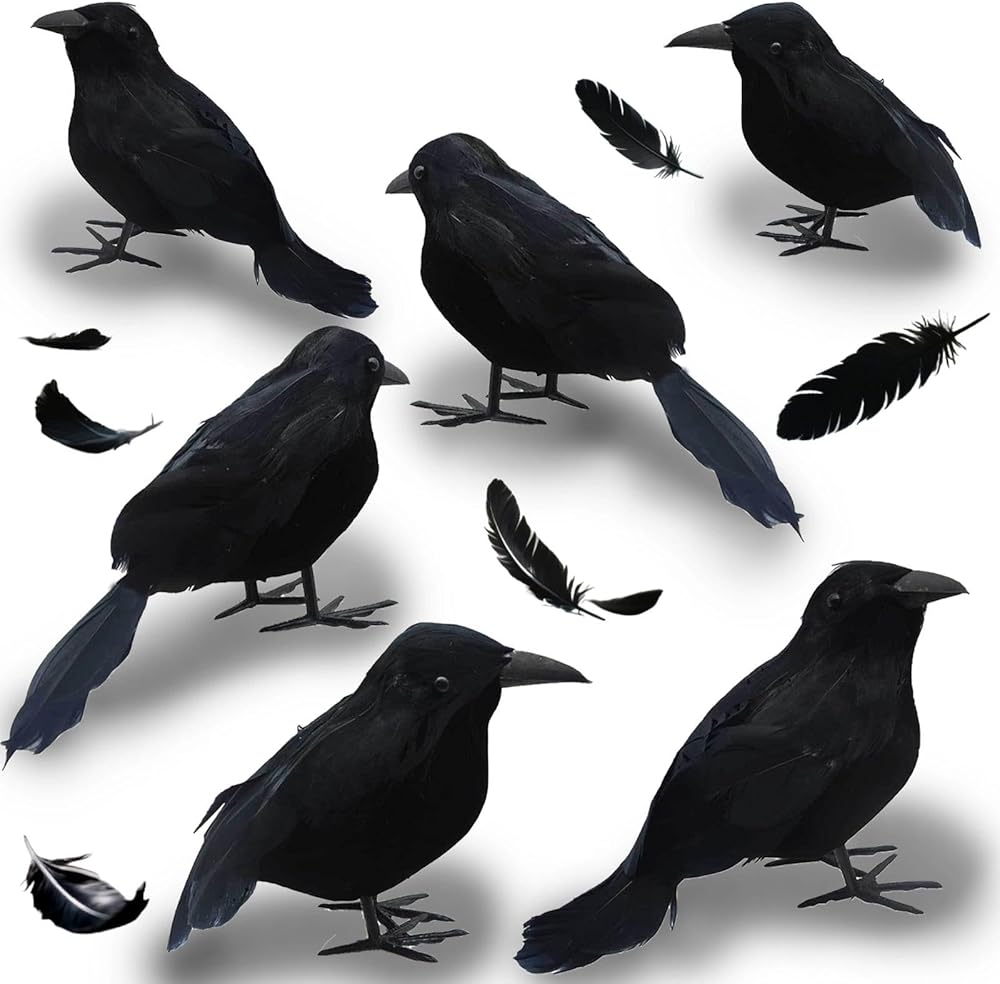 【المواصفات: تحتوي العبوة على 6 غربان واقعية في 3 أوضاع مختلفة، كل منها تزن 0.35 أونصة. إنهم أصغر قليلاً من الغراب العادي. كل غراب مملوء بالرغوة ومغطى بالريش والمخمل للحصول على مظهر نابض بالحياة.