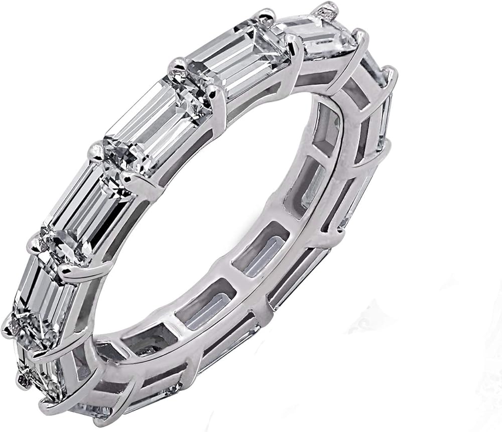 خاتم DIAMONBLISS من الفضة الإسترليني المطلية بالروديوم 4.2 قيراط 4.2 قيراط قطع باغيت من الألماس المقلد الخلود