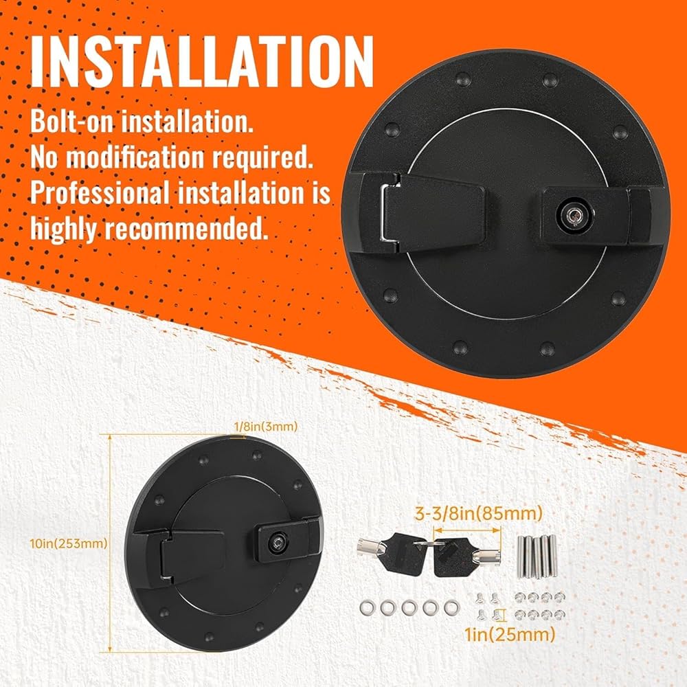 HIGH QUALITY- The locking fuel door is made of high quality aluminum for high strength and durability, impact resistance and not easy to break. And the locking fuel door adopts a chrome process to ensure to provide sleek appearance and long lifespan.