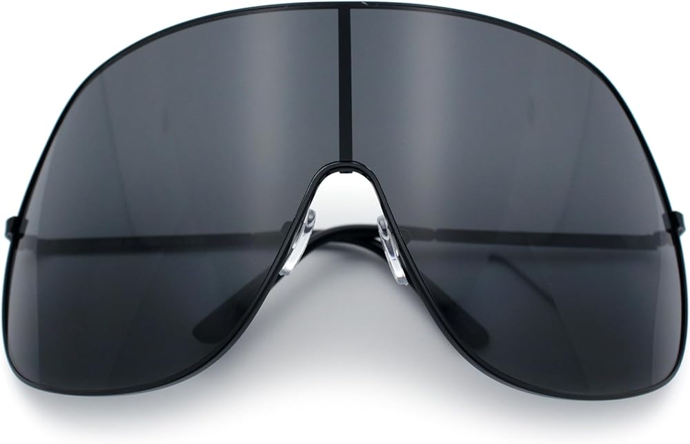 These super funky XXL oversized shield fashion style wrap around oversized shield sunglasses are the perfect way to stand out from the crowd. They are designed to achieve a maximum facial coverage, so you can be sure that your eyes will be protected from the sun's harmful UV rays. The sunglasses are made with 100% UV400 polycarbonate material, which is both durable and lightweight. They also have a comfortable fit that will keep them in place all day long. Whether you're going for a walk on the beach or running errands around town, these sunglasses are the perfect way to add a touch of style to your outfit. (c024)