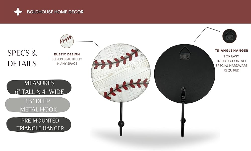 - من المؤكد أن خطاف البيسبول الجداري الخاص بنا سيضيف جاذبية لمحبي الرياضة العتيقة إلى أي غرفة في المنزل.